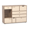 Стильный и вместительный комод Вайс-4 добавит в интерьер функциональности. Модель оснащена четырьмя выдвижными ящиками, четырьмя отделениями за распашными дверками и одной открытой нишей. Комод дополнен оригинальной фурнитурой «под старину».