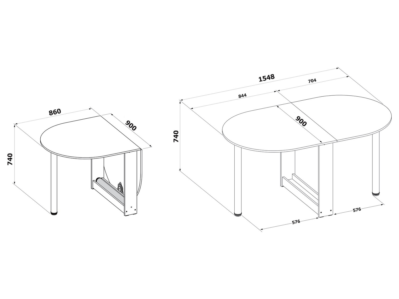 Ширина столешницы в разложенном состоянии — 154,8 см, в сложенном — 860 мм.