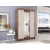 Шкаф-купе Агат обладает простым, но привлекательным стилем исполнения. Модель оснащена множеством полочек в центральном отделении и двумя евроштангами в боковых секциях.