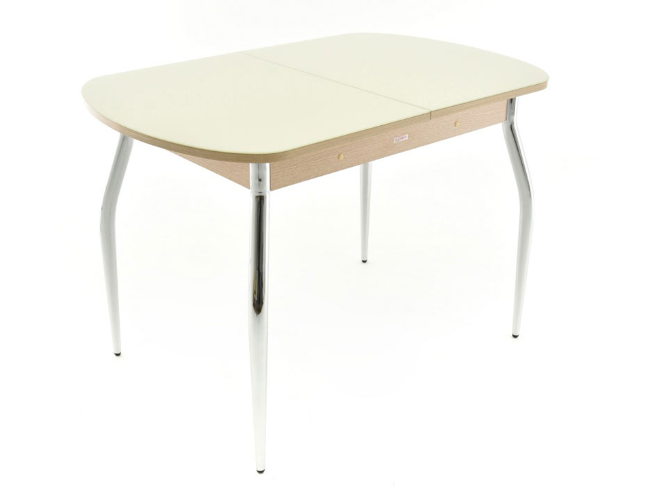 Обеденная группа Апель — современный и практичный атрибут кухонного пространства. Комфортную посадку за столом обеспечат мягкие и высокие стулья. Закаленное стекло, защищающее поверхность столешницы, обладает рядом преимуществ: оно устойчиво к перепадам температуры, не боится влаги, а также легко очищается от загрязнений. Стол легко раскладывается образуя дополнительные посадочные места для гостей.