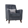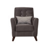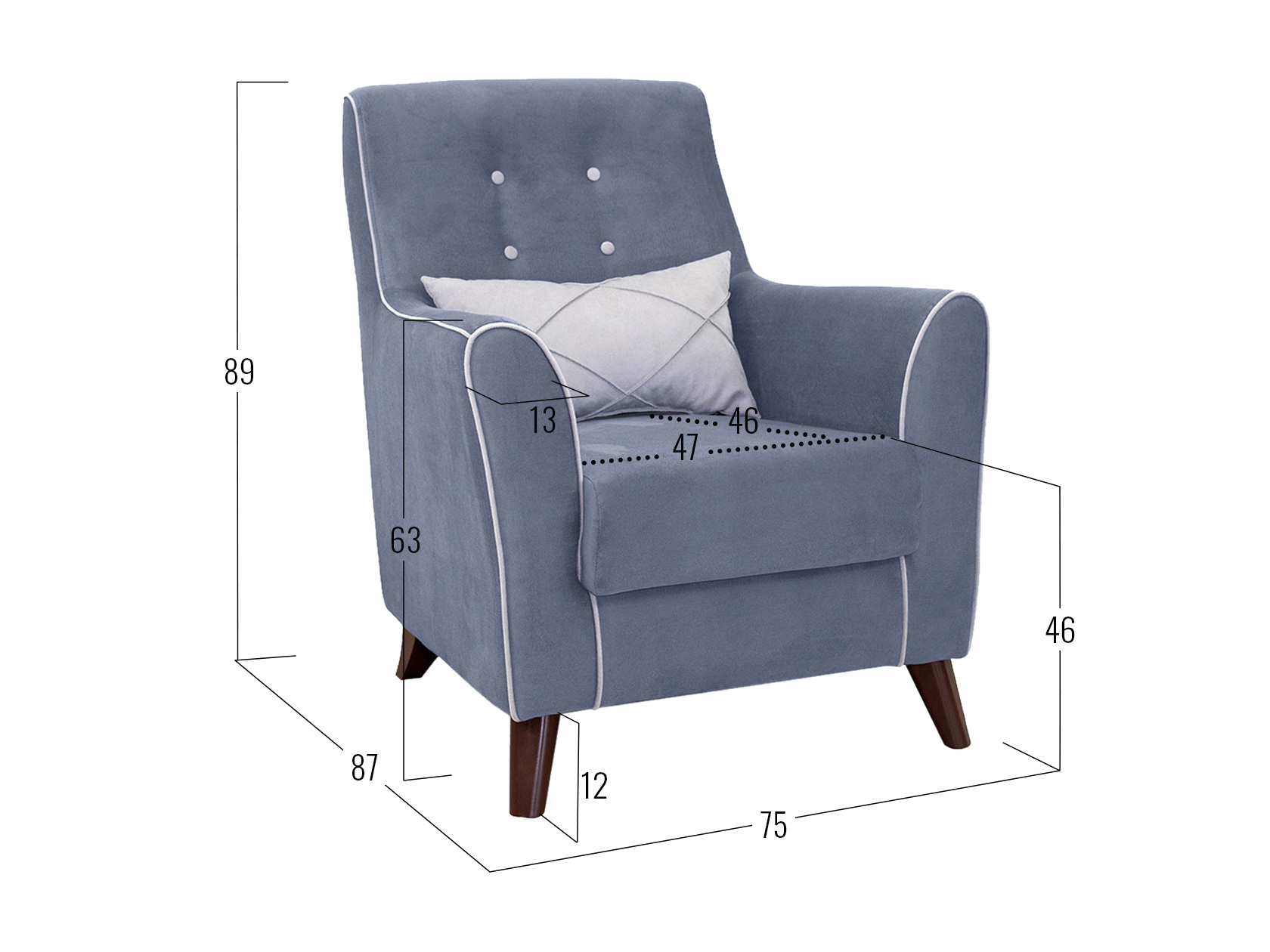 Очаровательное кресло Френсис станет вашим излюбленным местом для отдыха после трудного дня. Весь его внешний вид в ретро-стиле навевает уют и располагает к полноценному расслаблению. Спинка кресла имеет легкий наклон назад и соединяется с удобными подлокотниками для более комфортной посадки. Она декорирована имитацией стяжки с пуговицами. На сиденье расположена большая мягкая подушка.