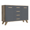 Комод Вега Скандинавия выполнен в спокойной цветовой палитре. Широкая столешница подойдет для размещения телевизора практически любой диагонали, создав тем самым домашний кинотеатр. Комбинированное наполнение предусматривает отделения за распашными дверками, а также ящики полного выдвижения. Высокие ножки не перегружают обстановку и позволяют удобно проводить уборку. Петли с доводчиком обеспечат плавное и бесшумное закрывание дверок.
