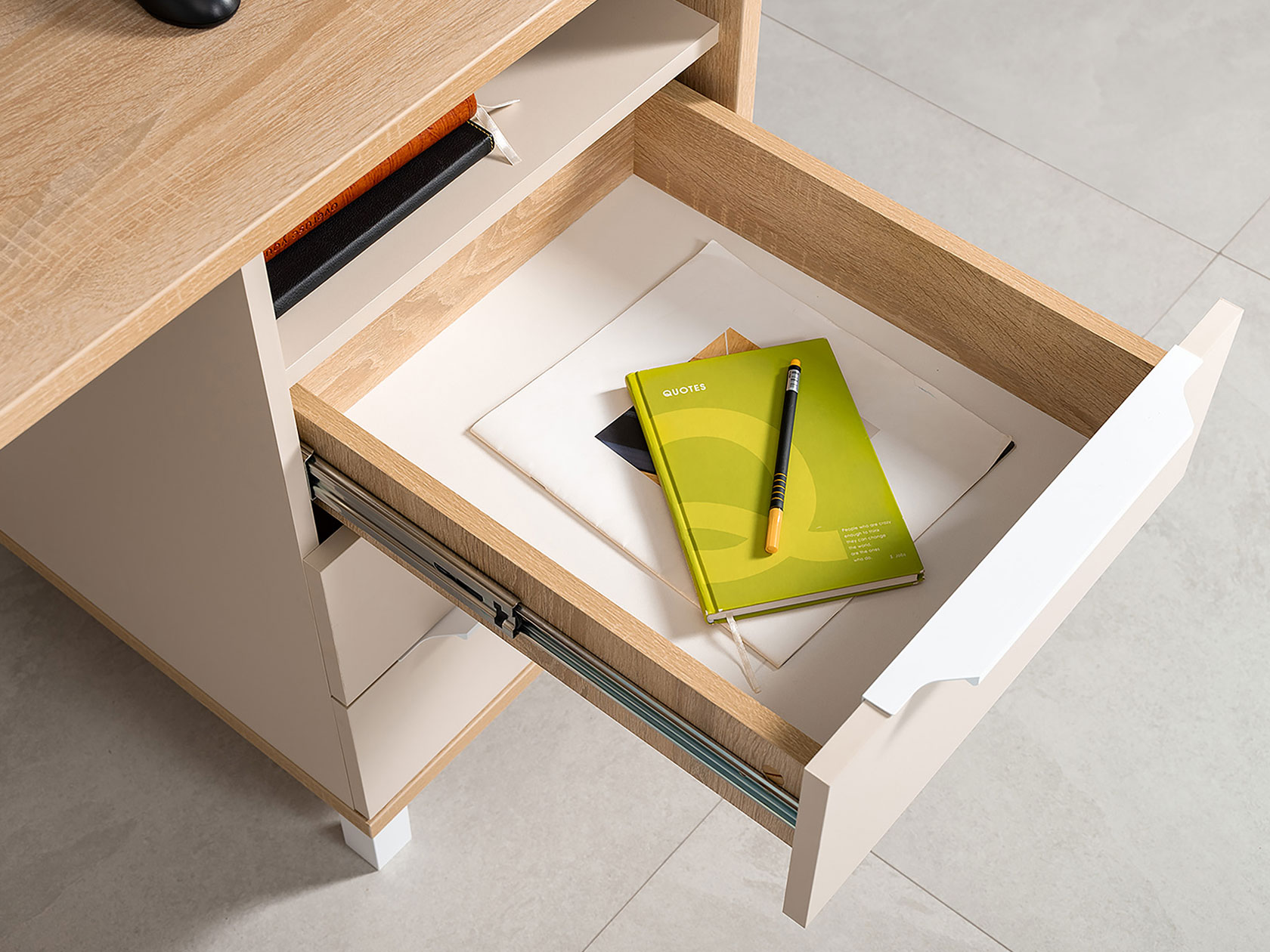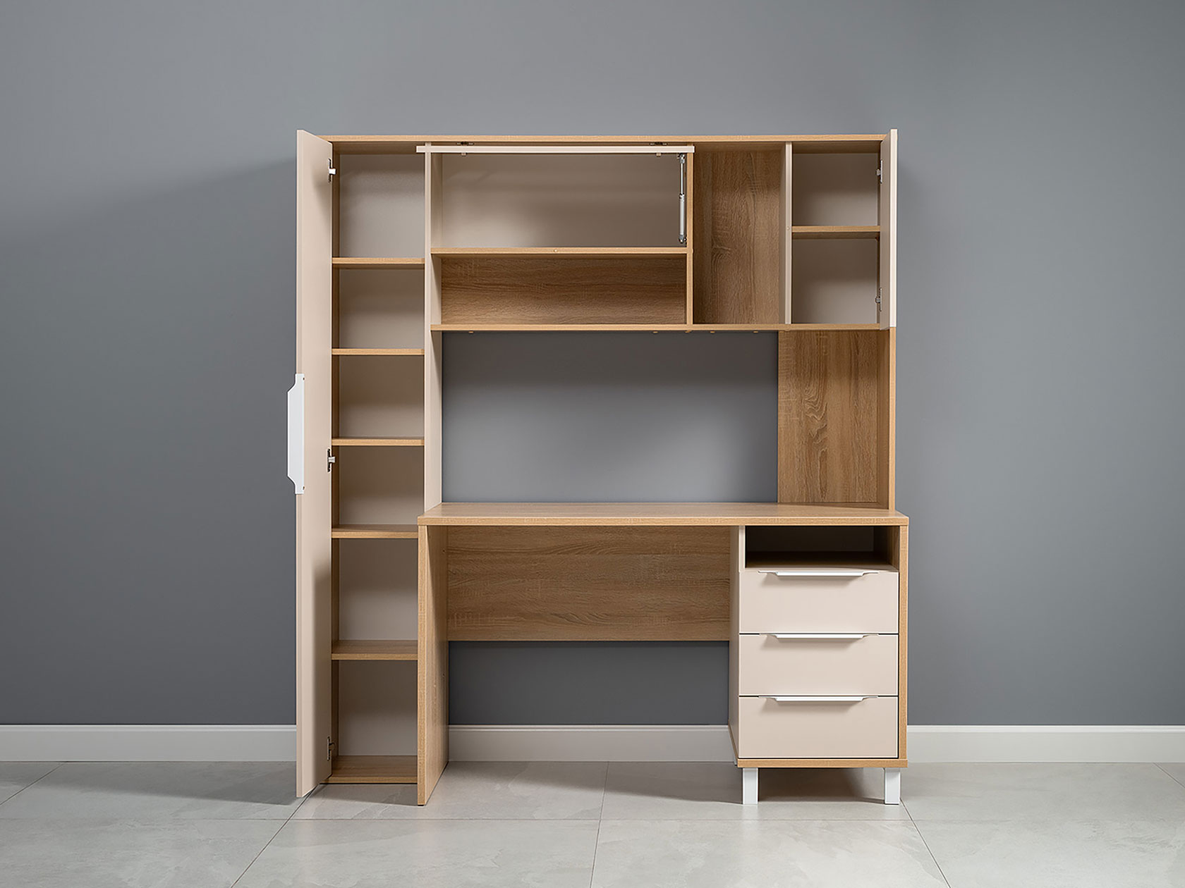 Компьютерный стол Комфорт 12.95 — идеальный вариант для тех, кто ценит порядок на рабочем месте. Вместительная система хранения поможет разместить под рукой максимальное количество вещей. Лаконичный дизайн, простые формы и отсутствие лишних деталей позволяют легко вписать конструкцию в любой интерьер.