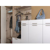 На открытой вешалке с крючками, поперечной штангой и небольшими полочками удобно хранить верхнюю одежду, головные уборы и шарфы. Для обуви предусмотрены специальные закрытые секции, а ключи и другие мелочи можно спрятать в выдвижном ящике.