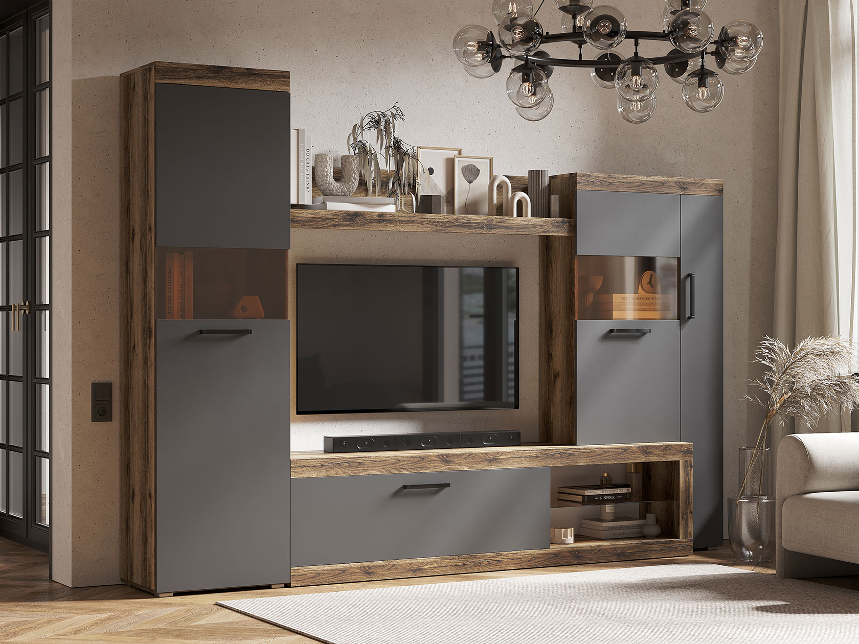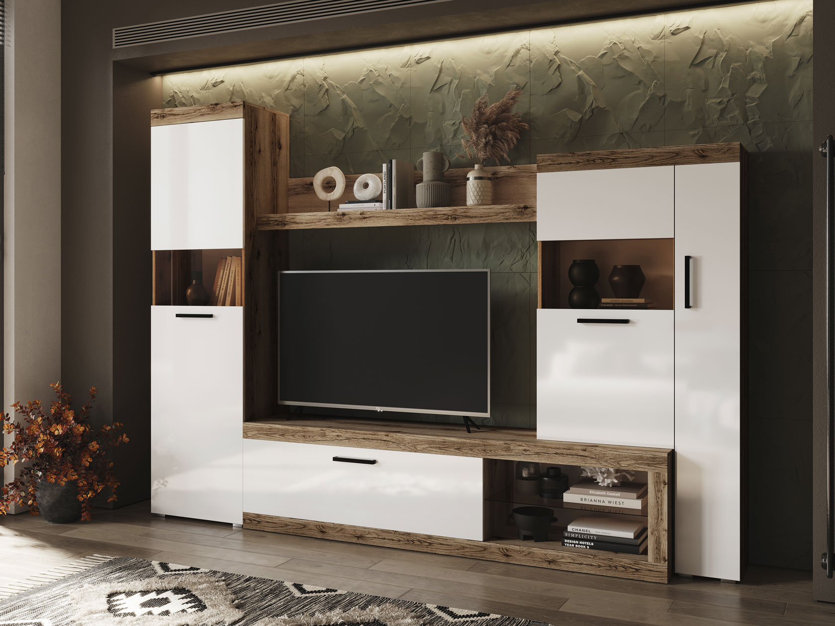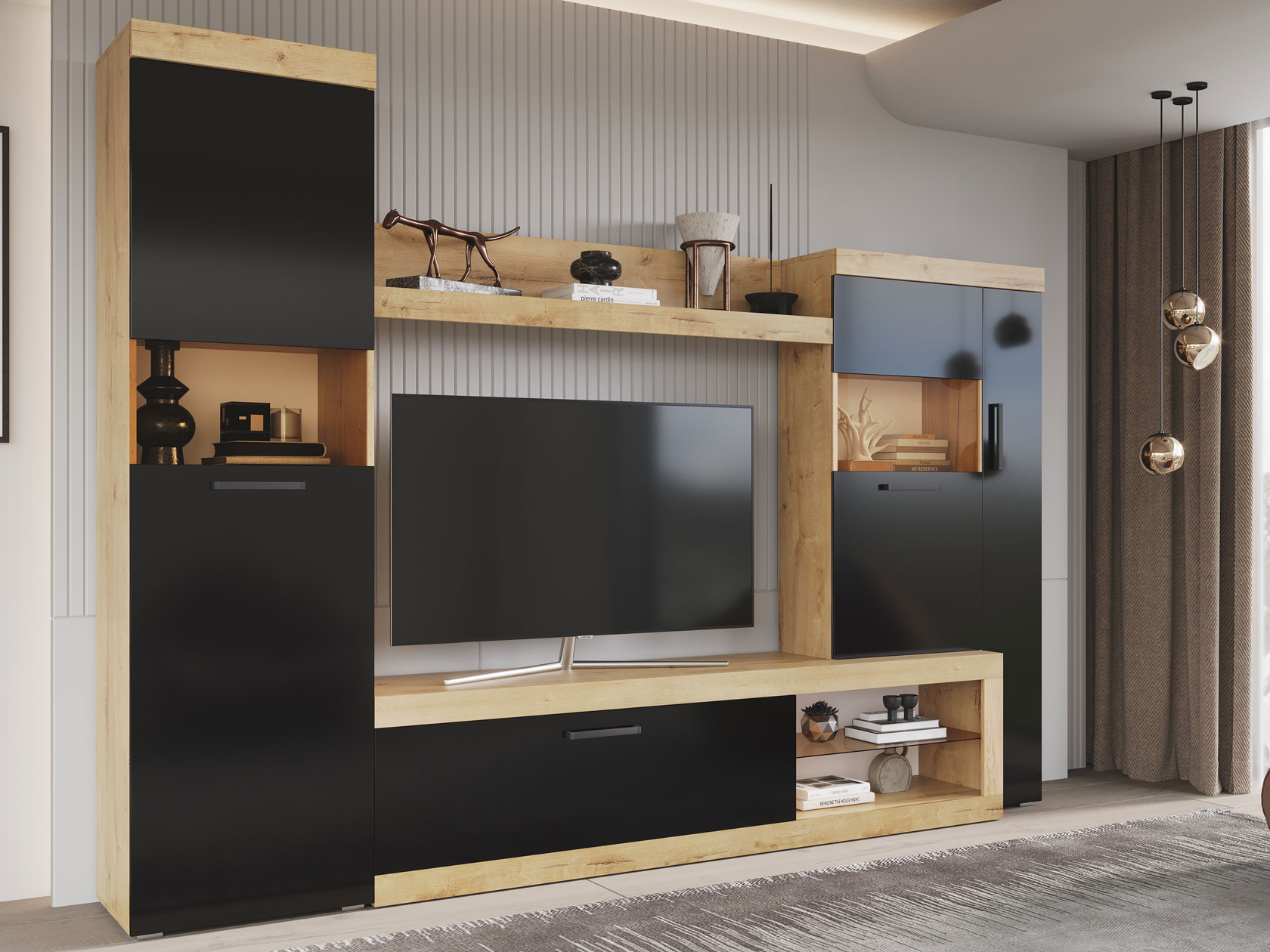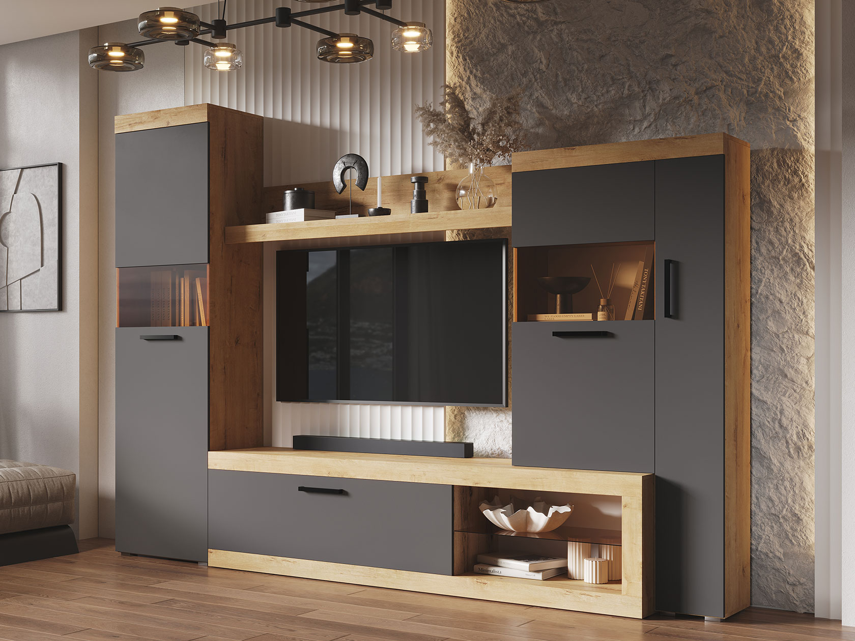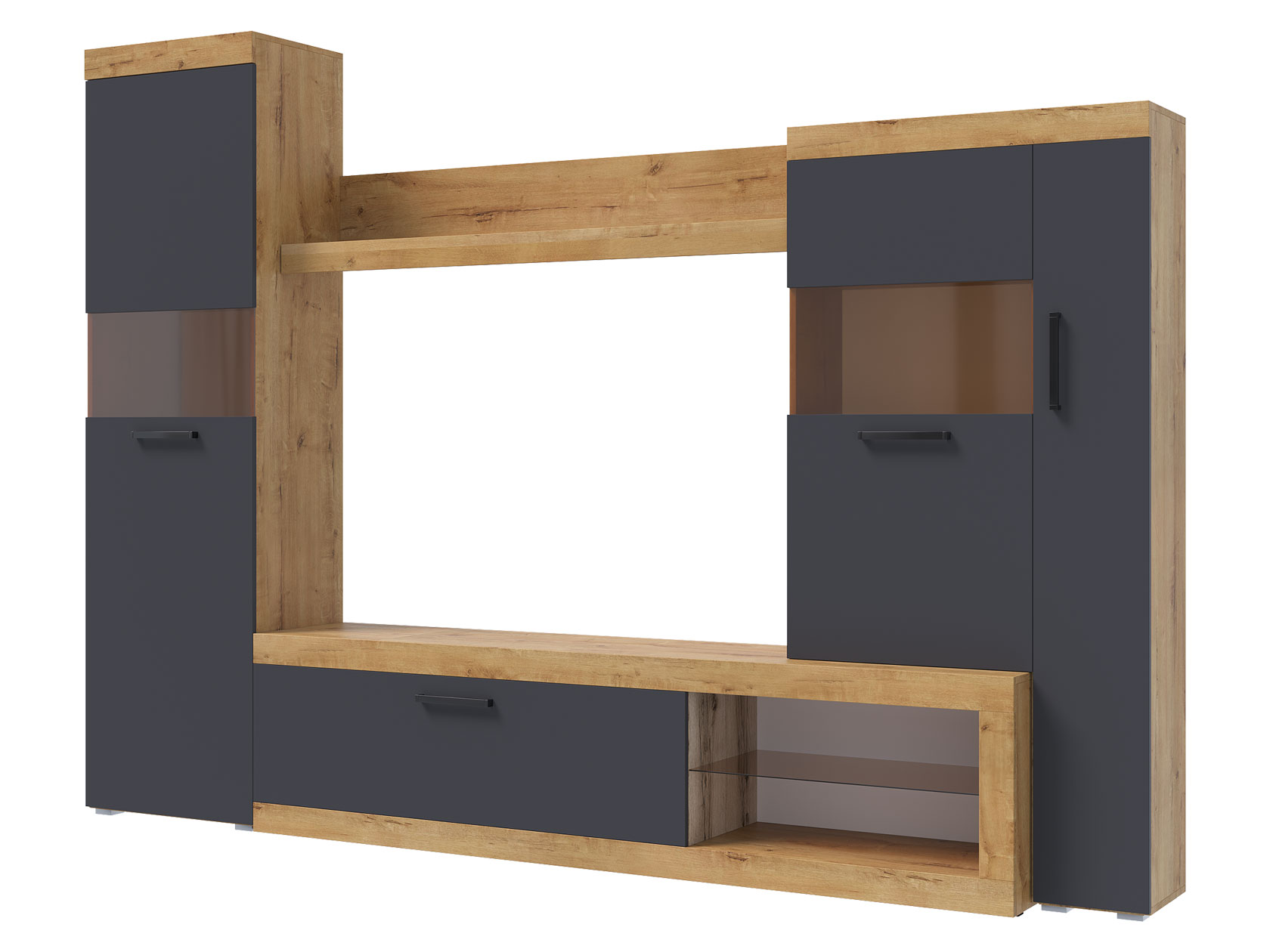 Гостиная Бастон позволит разместить личные вещи и организовать полноценную ТВ-зону. Стенка отлично впишется в любой интерьер в современном стиле. Имитация фактуры дерева и глянцевые фасады со вставками из тонированного стекла соответствуют последним тенденциям в мире корпусной мебели.