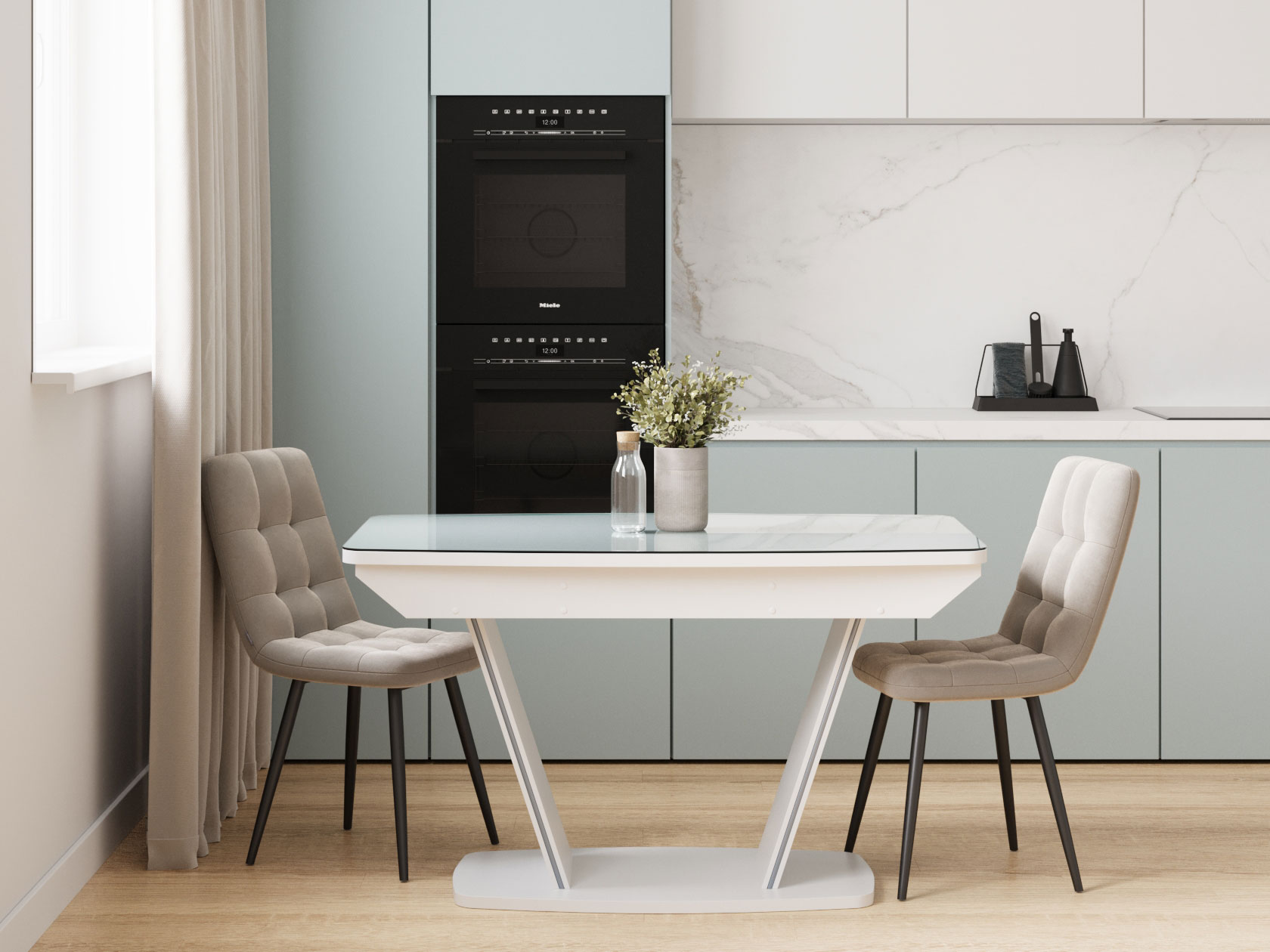 Кухонный стол Дрезден прекрасно подходит для обустройства практичной и стильной обеденной зоны. Конструкция лишена острых углов, поэтому модель максимально безопасна в эксплуатации. При необходимости столешница легко увеличивается по ширине, чтобы разместить большое количество гостей или сервировать много блюд.