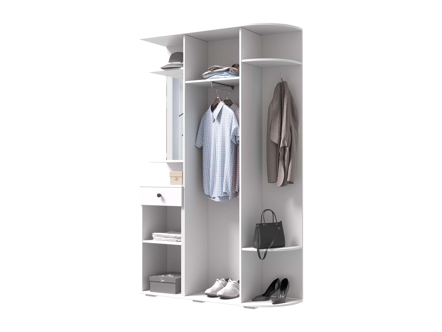 Прихожая Виза станет визитной карточкой входной зоны и поможет организовать аккуратное хранение одежды и обуви. Полки и выдвижной ящик позволят разместить средства по уходу за обувью, головные уборы и другие аксессуары.