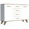 Комод Вега Скандинавия выполнен в спокойной цветовой палитре. Широкая столешница подойдет для размещения телевизора практически любой диагонали, создав тем самым домашний кинотеатр. Комбинированное наполнение предусматривает отделения за распашными дверками, а также ящики полного выдвижения. Высокие ножки не перегружают обстановку и позволяют удобно проводить уборку. Петли с доводчиком обеспечат плавное и бесшумное закрывание дверок.