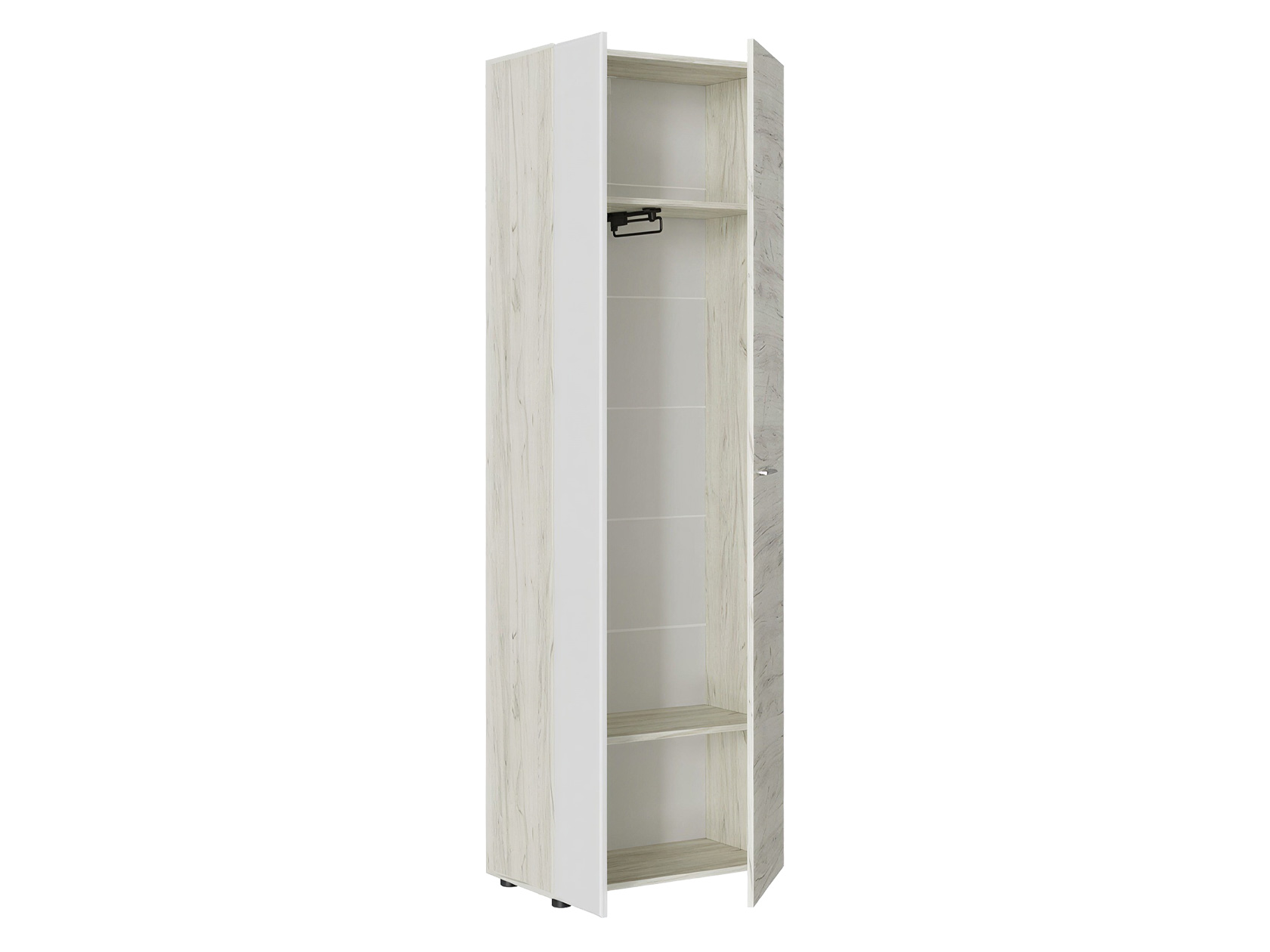 Распашной шкаф Сафари идеально впишется в практичный и стильный интерьер прихожей, спальни или другой комнаты. Удобная выдвижная штанга позволит разместить плечики с одеждой разной длины.