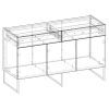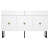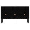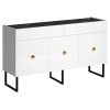 Комод Марсель — эффектный и практичный образец мебели в стиле модерн. Благодаря столешнице под мрамор, оригинальному узору на фасадах и ручкам в золотом декоре комод смотрится очень привлекательно и элегантно. Высокие ножки делают конструкцию визуально легче и упрощают уборку в комнате.