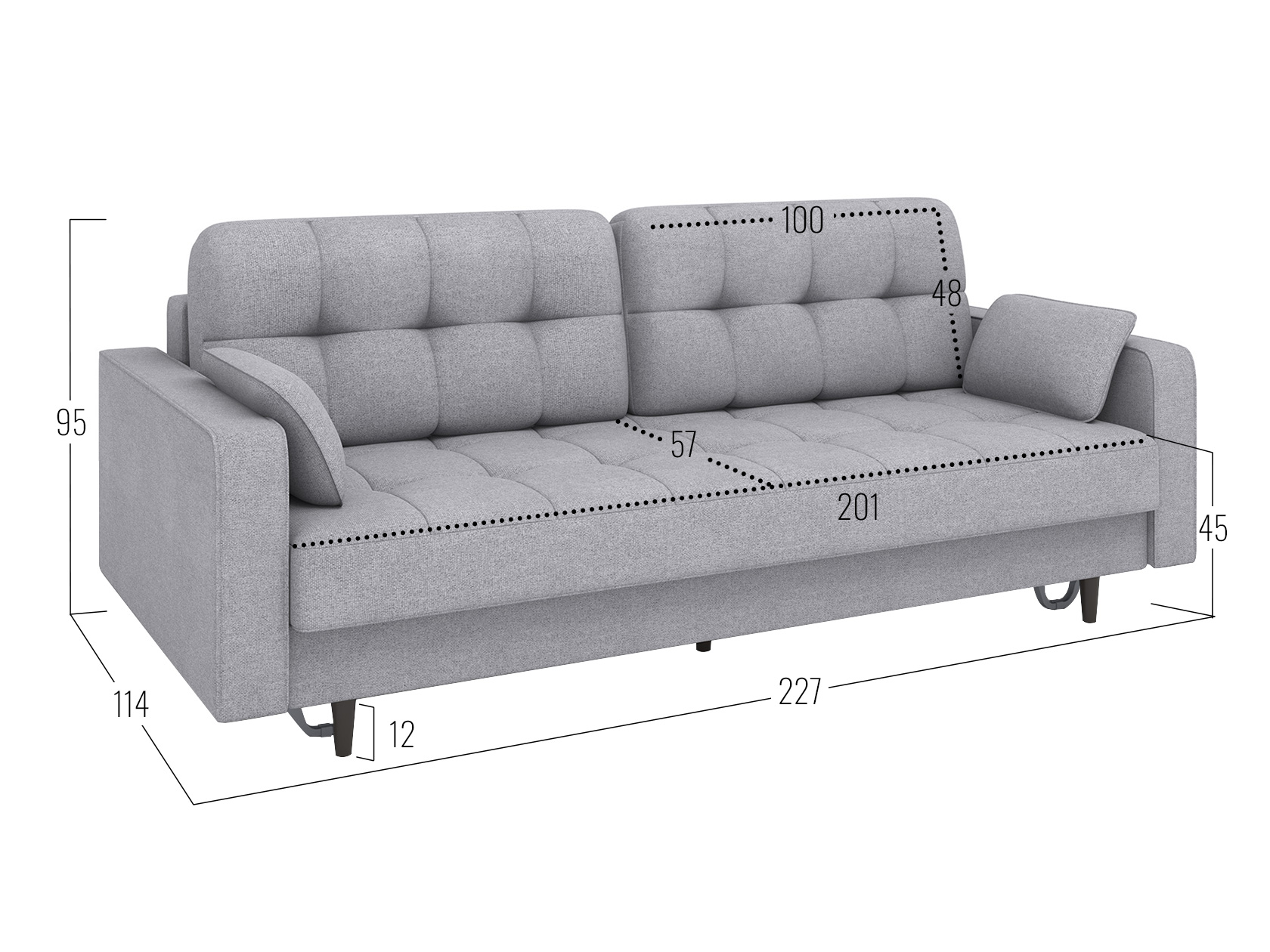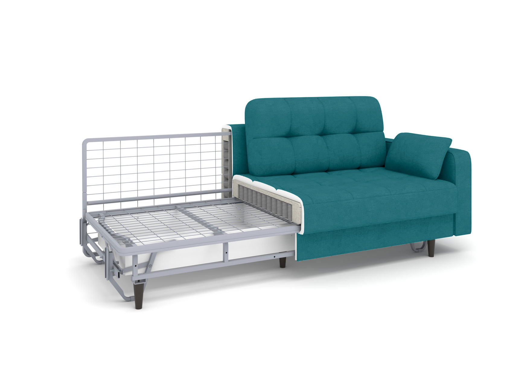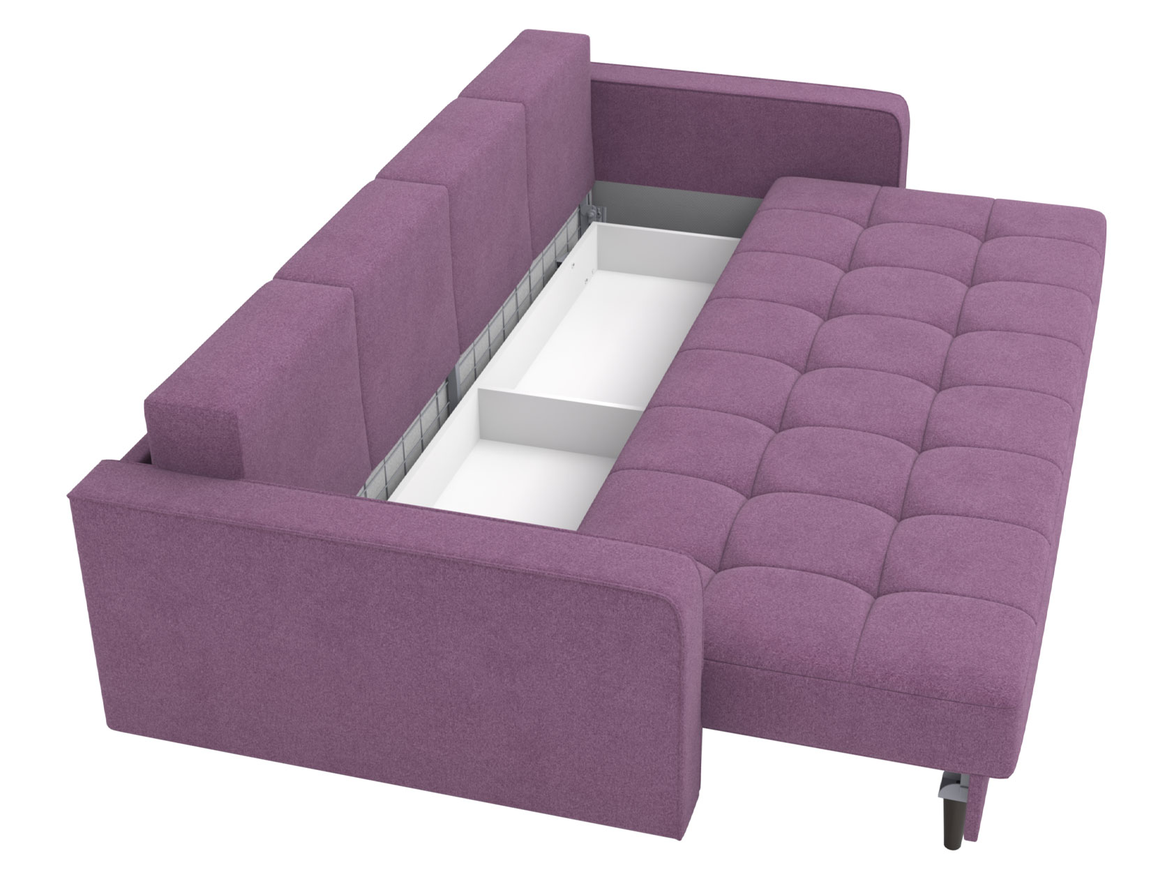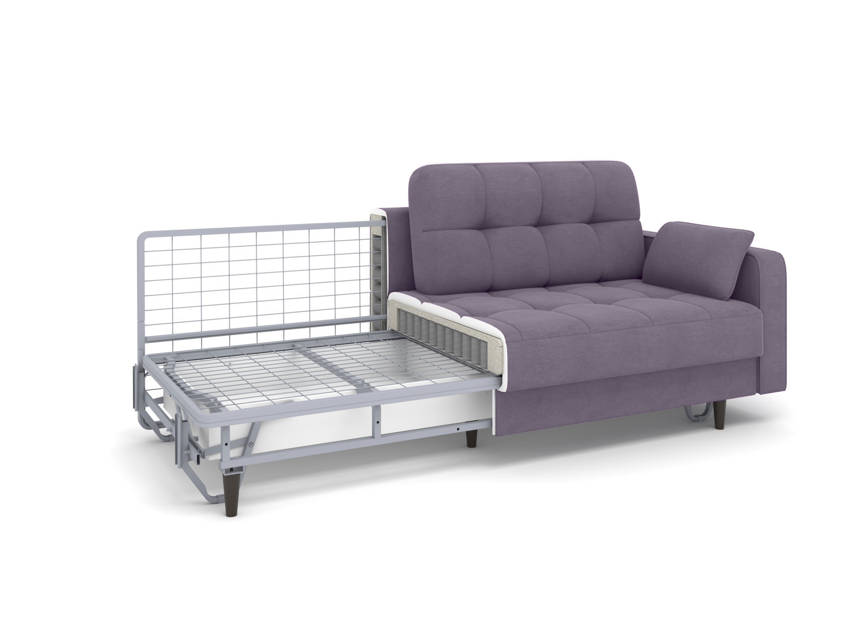 Механизм трансформации не повреждает напольное покрытие и легко превращает диван в просторную кровать с комфортным спальным местом. Независимый пружинный блок создает условия для крепкого и здорового сна, а специальная спинка оберегает от соприкосновения со стеной. Постельные принадлежности отлично помещаются в просторный бельевой ящик. Благодаря высоким ножкам не возникает проблем с уборкой: под диваном без труда проезжает робот-пылесос.