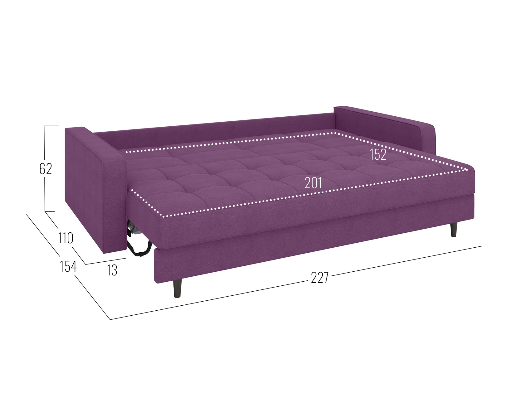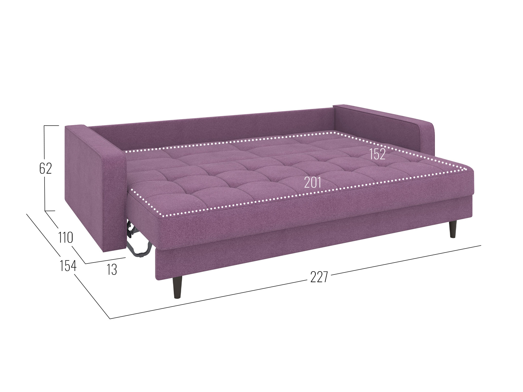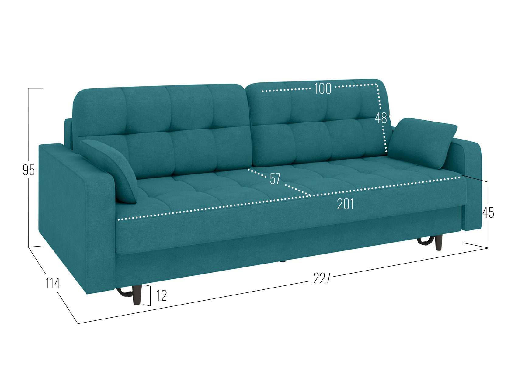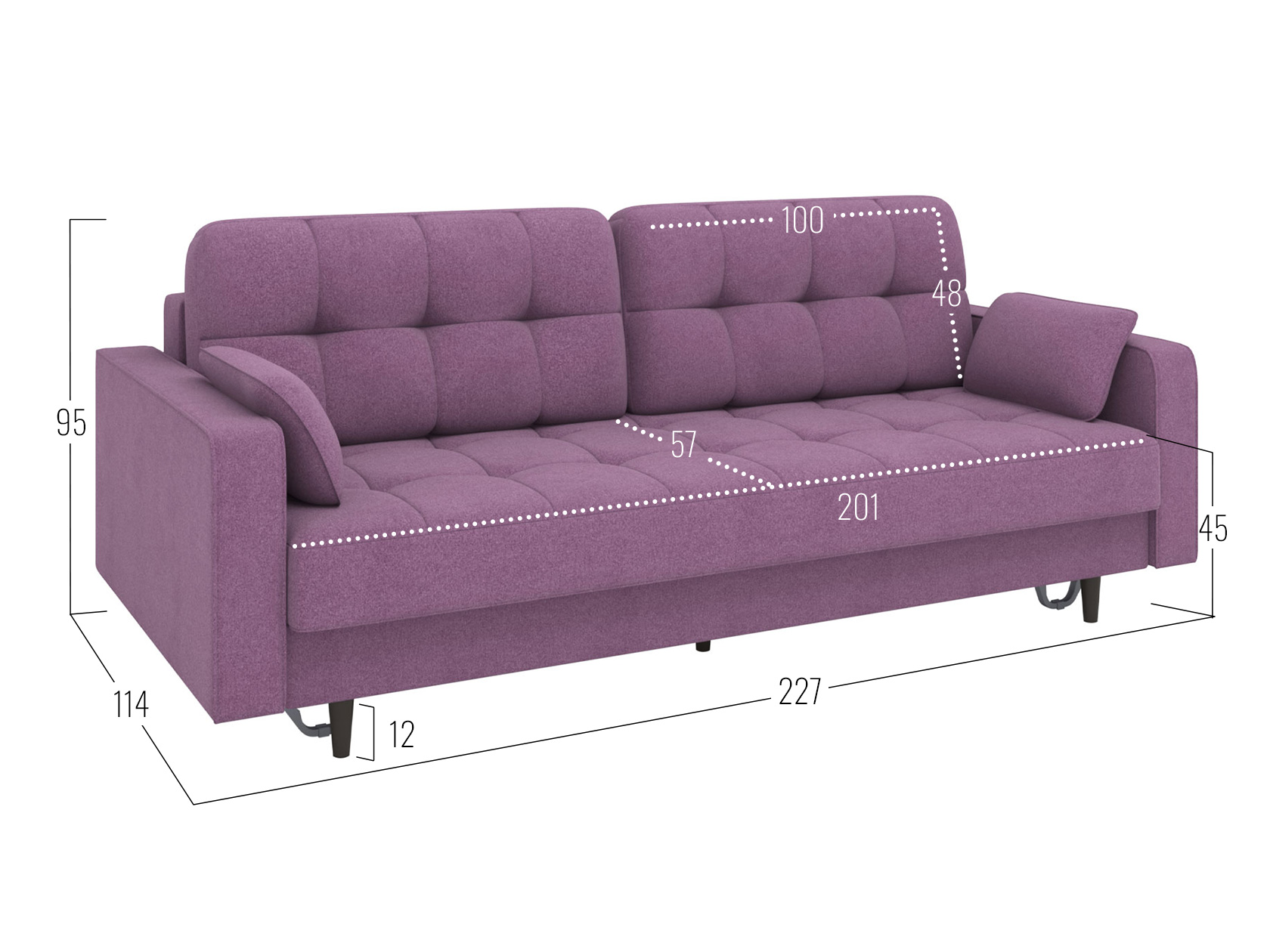 Механизм трансформации не повреждает напольное покрытие и легко превращает диван в просторную кровать с комфортным спальным местом. Независимый пружинный блок создает условия для крепкого и здорового сна, а специальная спинка оберегает от соприкосновения со стеной. Постельные принадлежности отлично помещаются в просторный бельевой ящик. Благодаря высоким ножкам не возникает проблем с уборкой: под диваном без труда проезжает робот-пылесос.