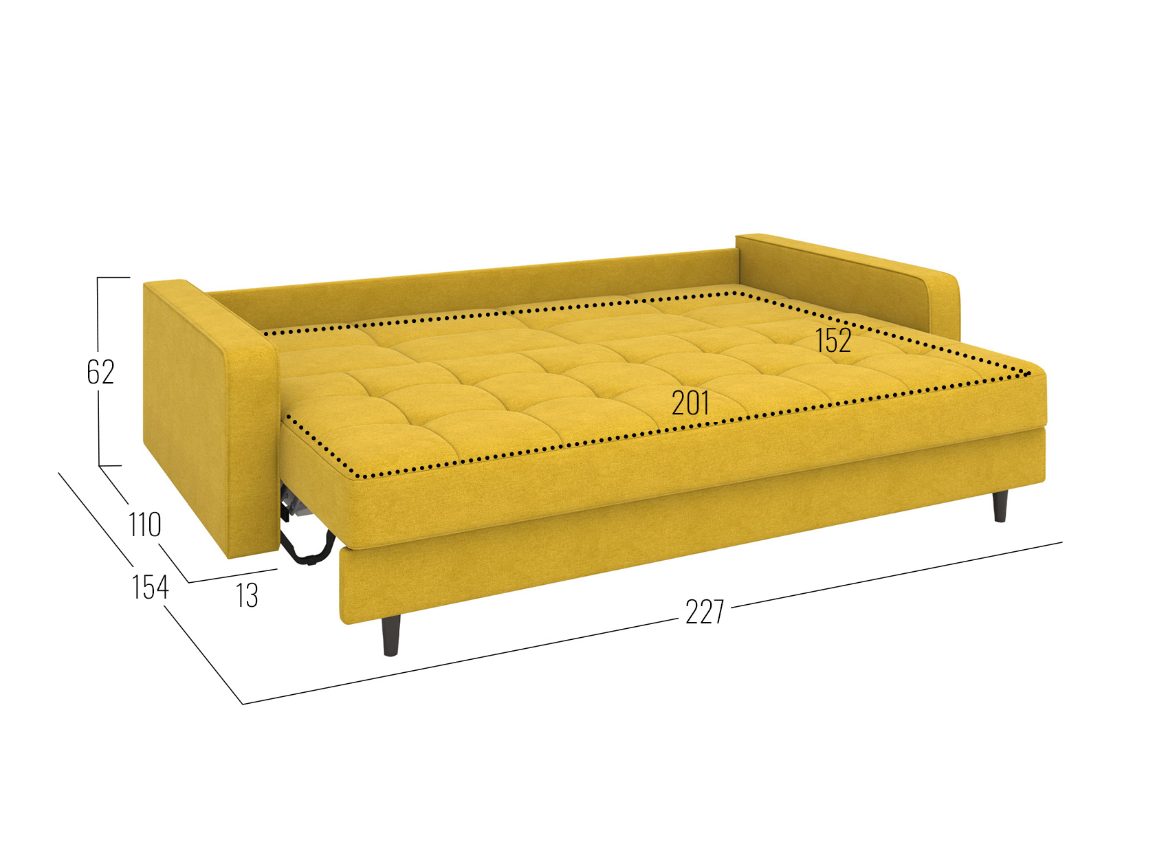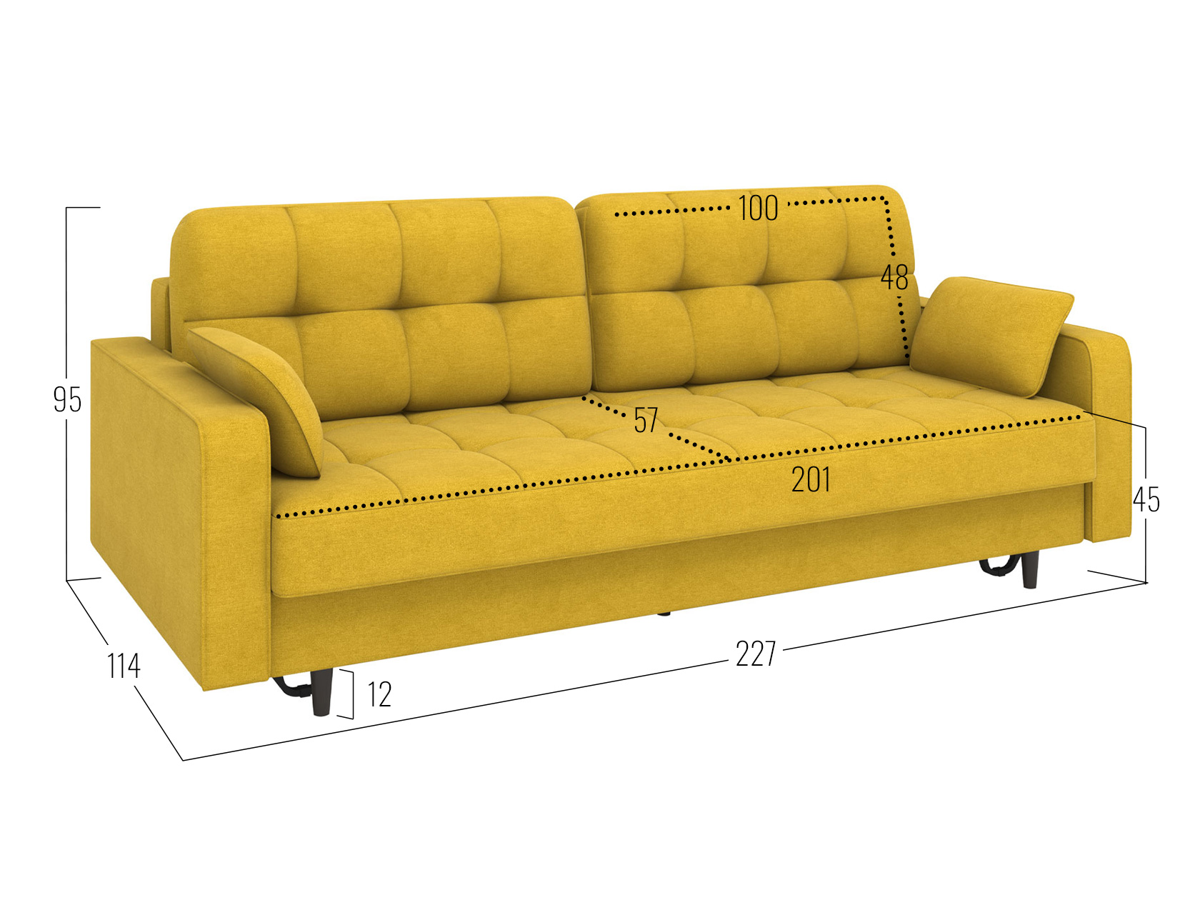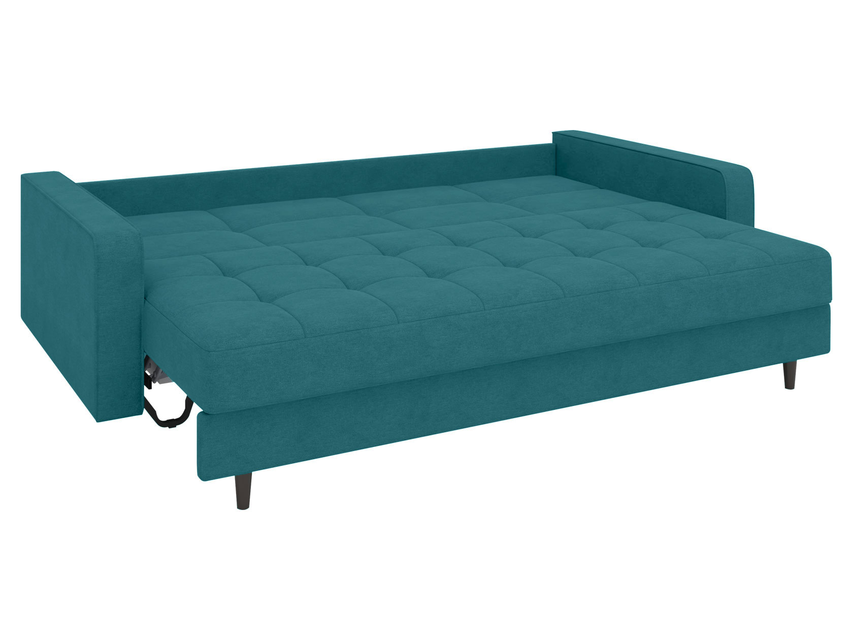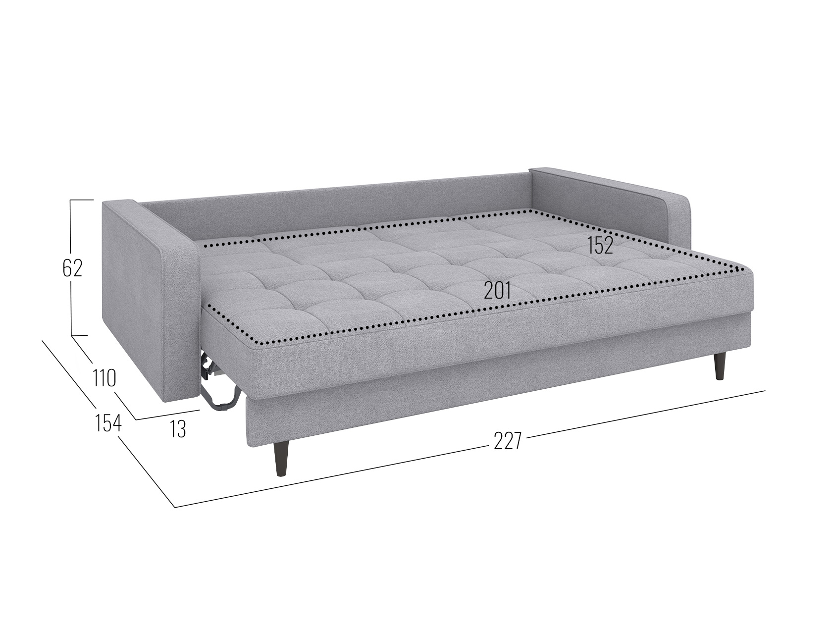 Механизм трансформации не повреждает напольное покрытие и легко превращает диван в просторную кровать с комфортным спальным местом. Независимый пружинный блок создает условия для крепкого и здорового сна, а специальная спинка оберегает от соприкосновения со стеной. Постельные принадлежности отлично помещаются в просторный бельевой ящик. Благодаря высоким ножкам не возникает проблем с уборкой: под диваном без труда проезжает робот-пылесос.