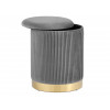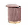 Пуфик Шарлотта станет ярким акцентом современного интерьера. Лаконичный образ модели дополнен декоративным оборками и основанием золотого цвета. Под сиденьем имеется удобный ящик для хранения полезных мелочей. В основании предусмотрены специальные подпятники, которые предотвращают скольжение.