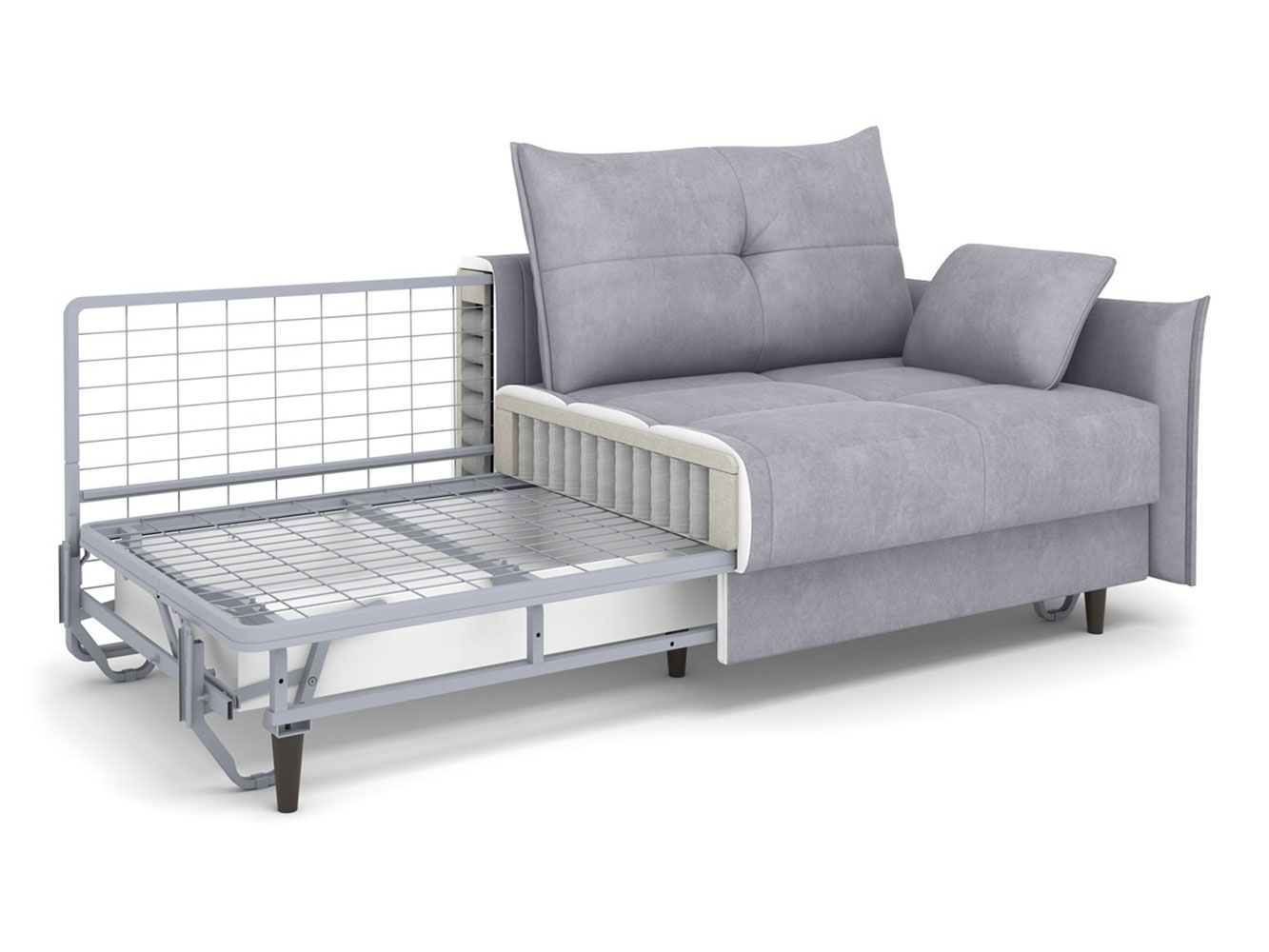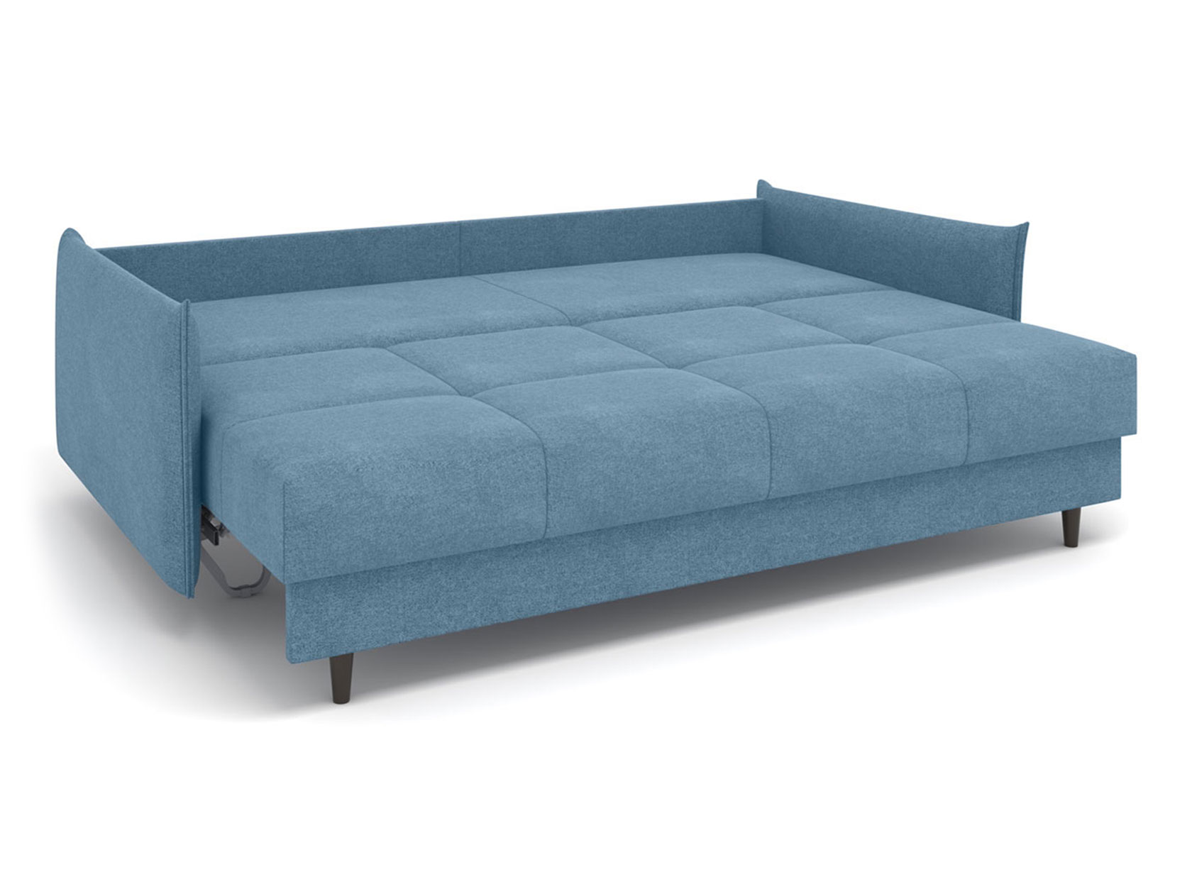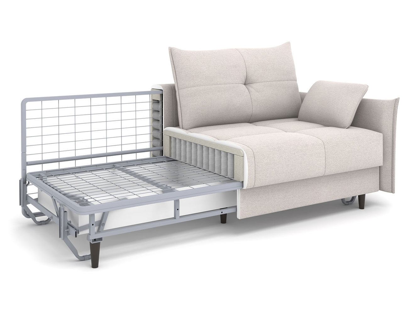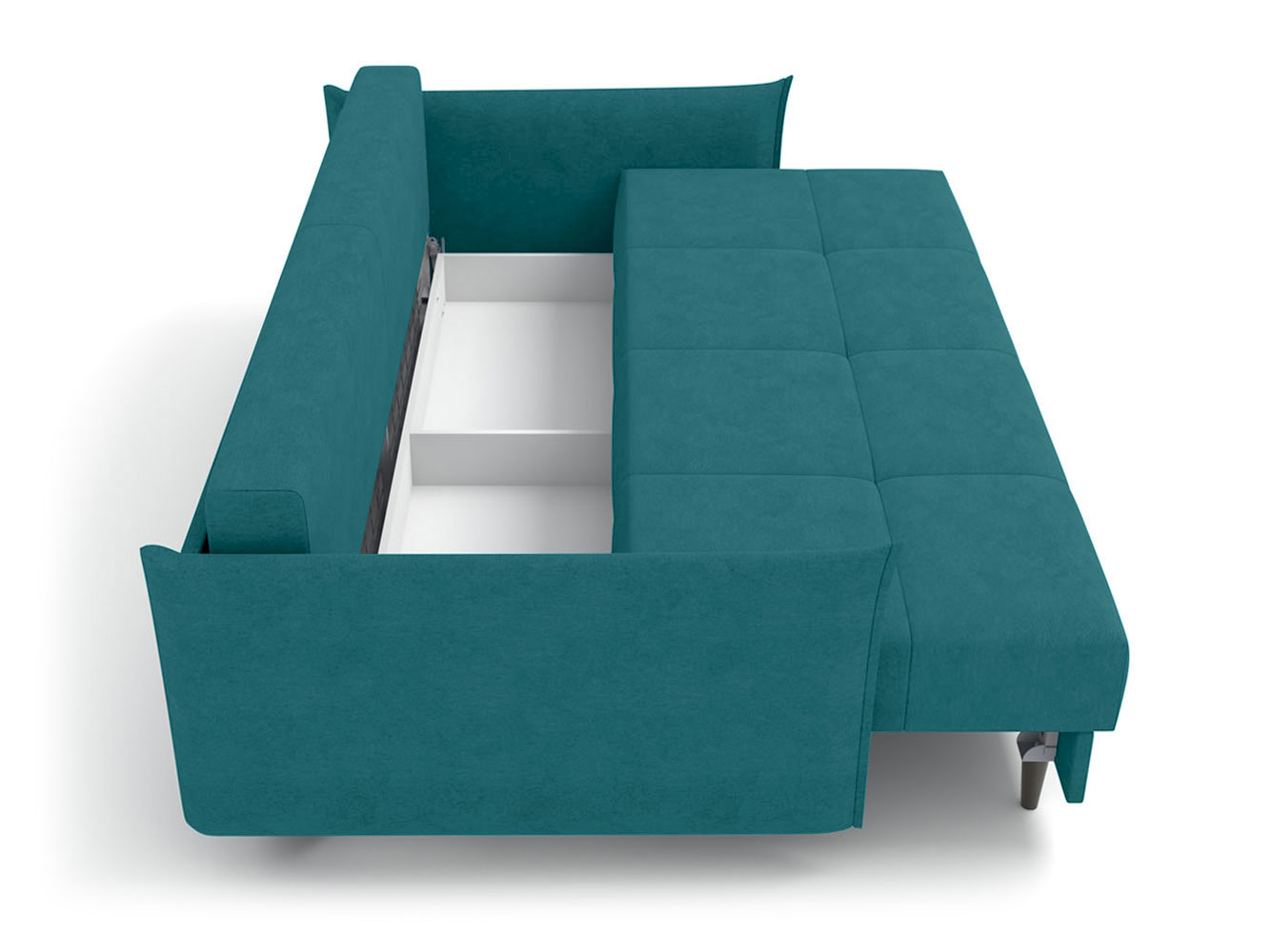 Со всех сторон используется лицевая обивка, поэтому модель можно установить в любой части комнаты и использовать для зонирования пространства. Благодаря съемному чехлу легко поддерживать чистоту дивана и при желании менять его цвет. Высокие ножки упрощают уборку: под диваном свободно маневрирует робот-пылесос. Для хранения постельных принадлежностей предусмотрен вместительный короб для белья.