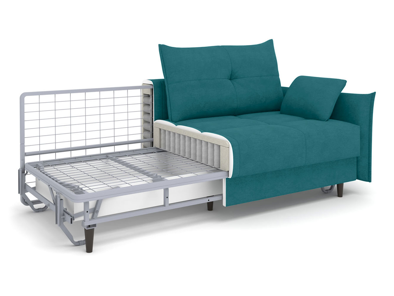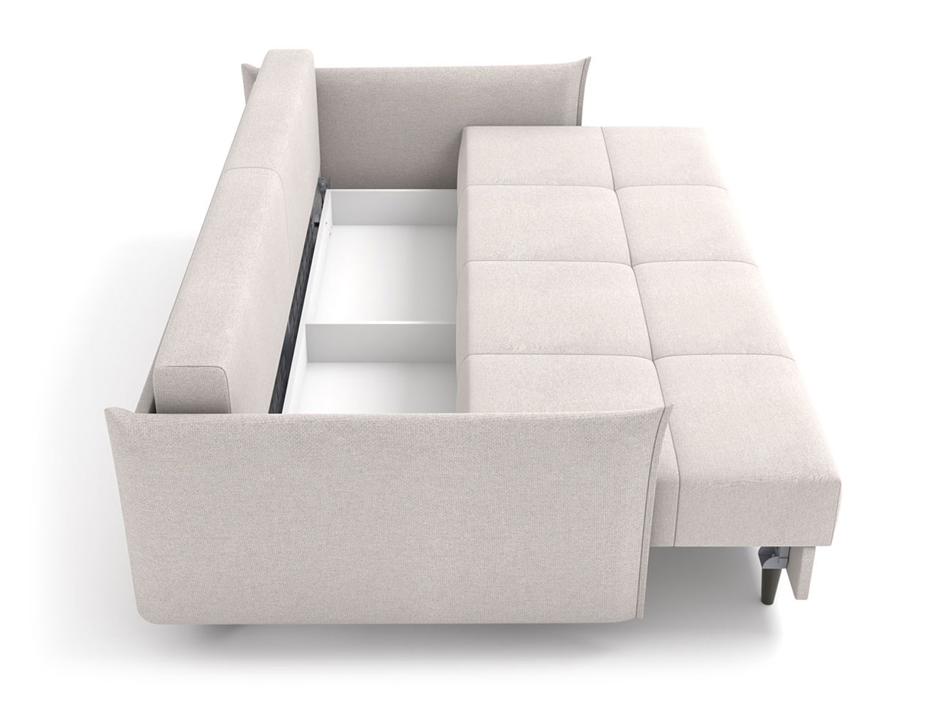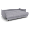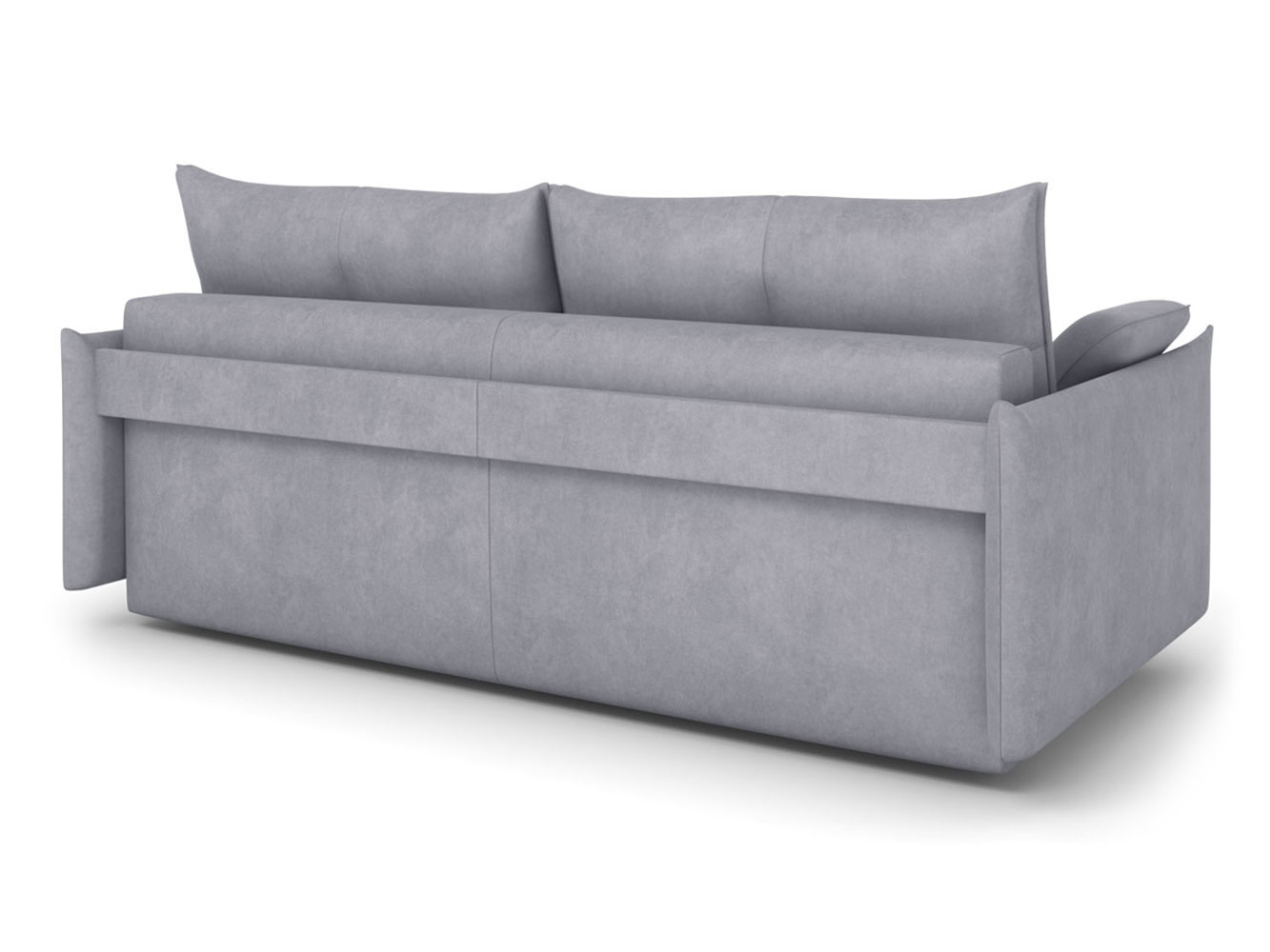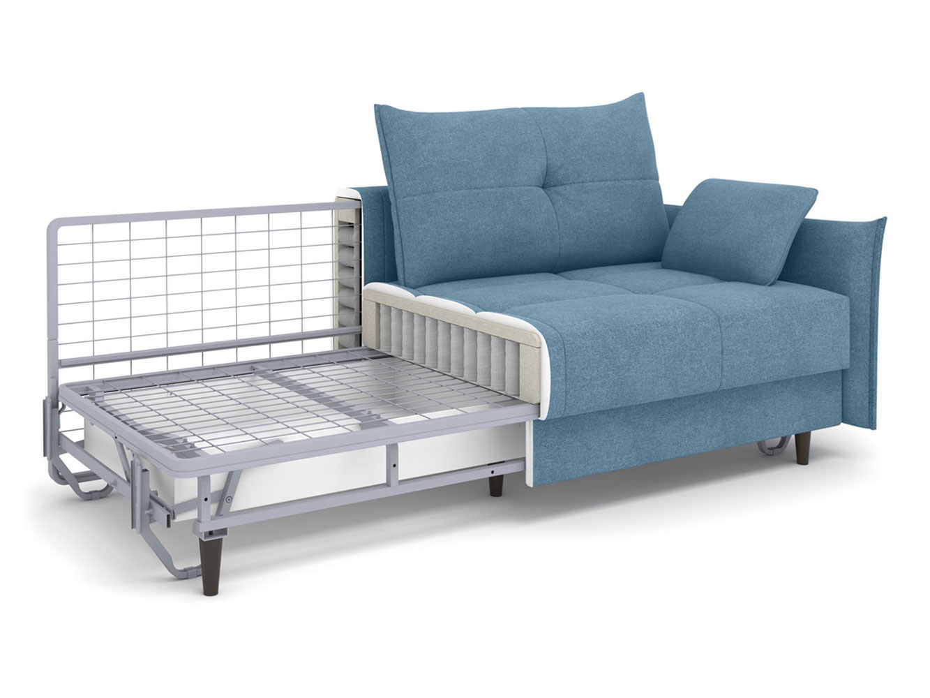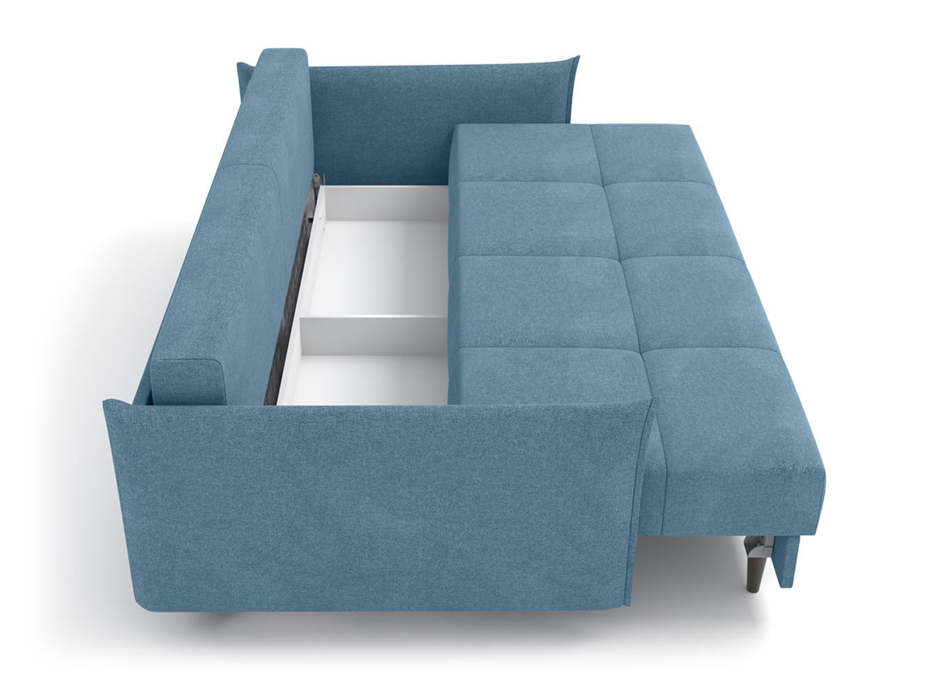 Со всех сторон используется лицевая обивка, поэтому модель можно установить в любой части комнаты и использовать для зонирования пространства. Благодаря съемному чехлу легко поддерживать чистоту дивана и при желании менять его цвет. Высокие ножки упрощают уборку: под диваном свободно маневрирует робот-пылесос. Для хранения постельных принадлежностей предусмотрен вместительный короб для белья.