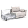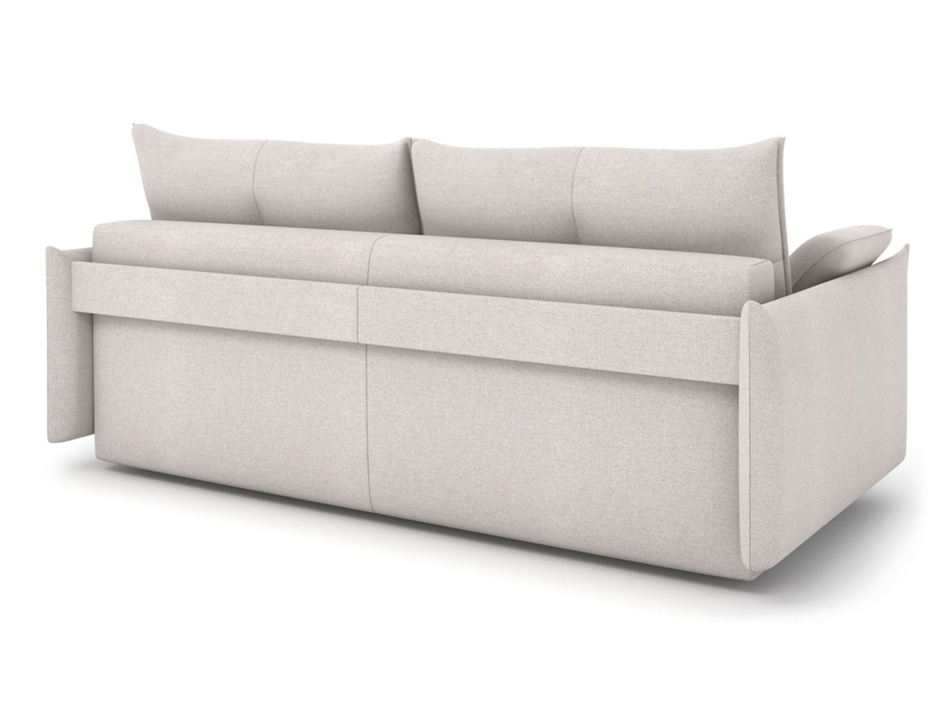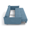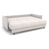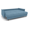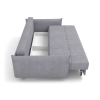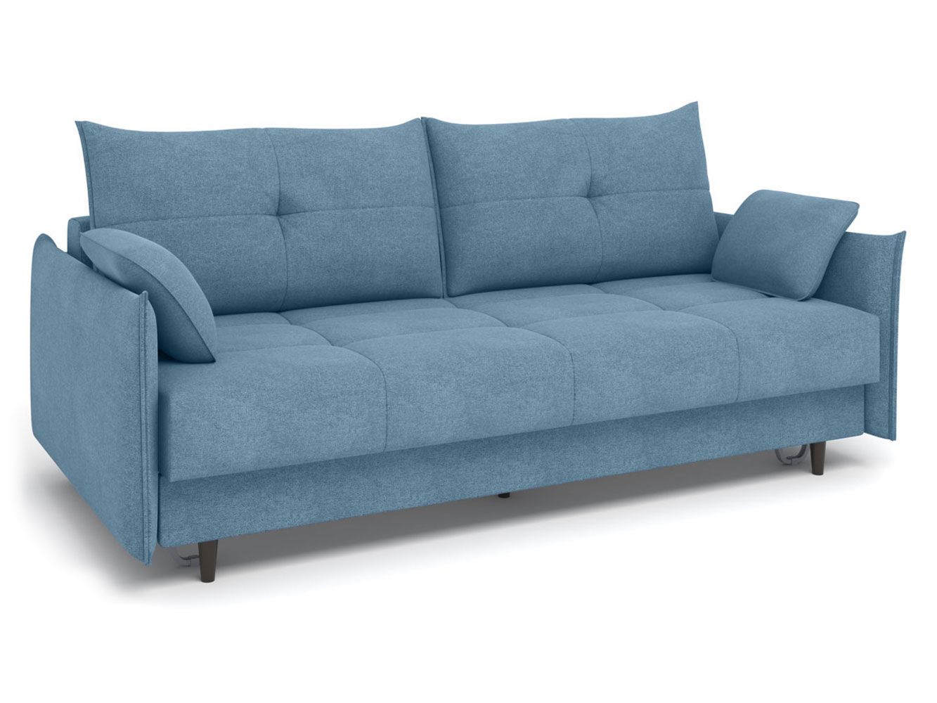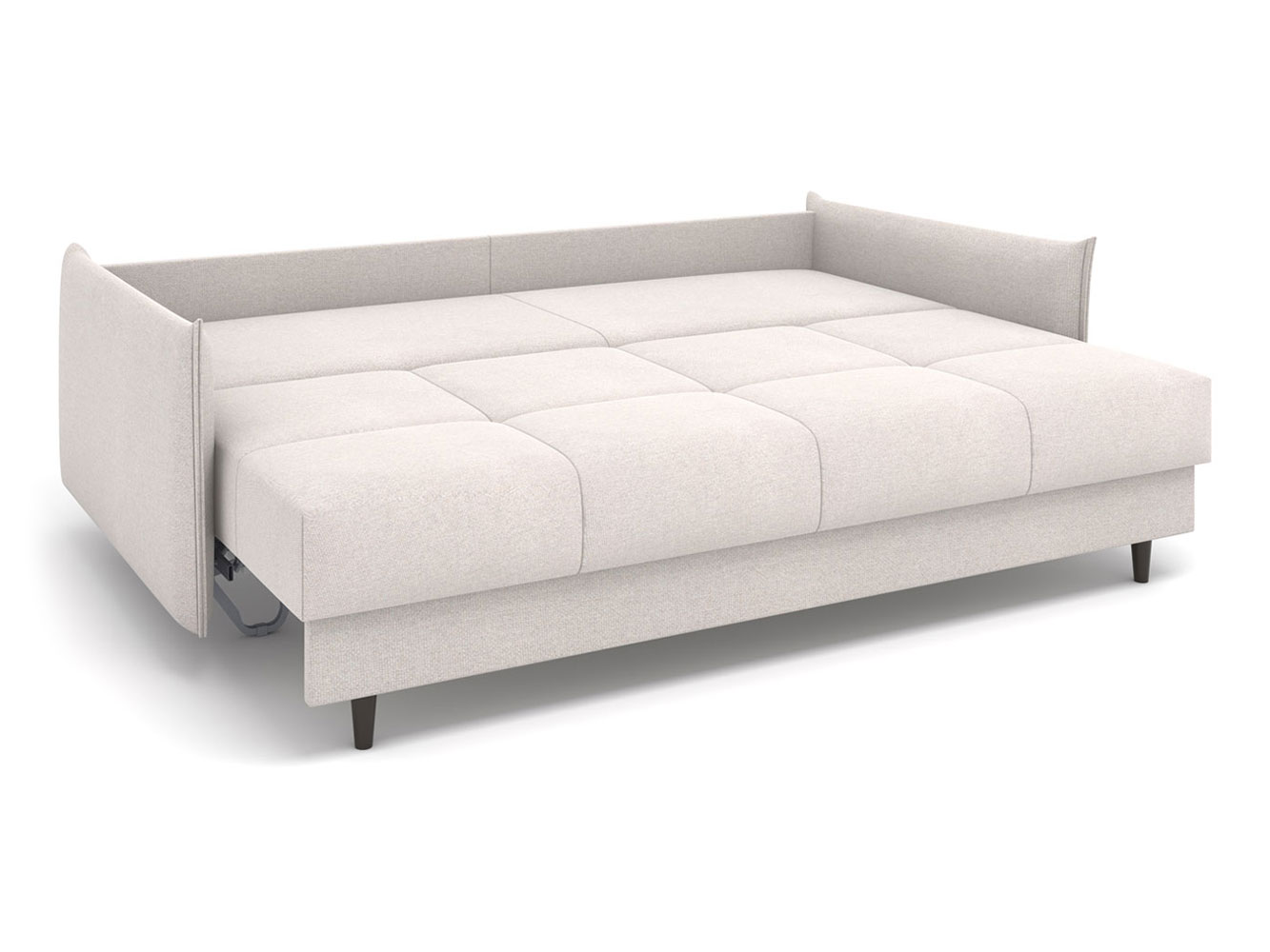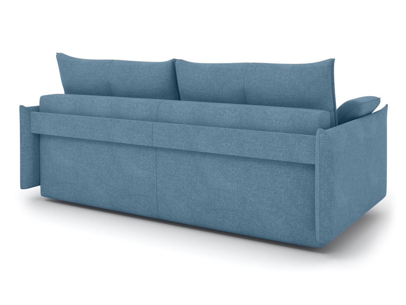 Со всех сторон используется лицевая обивка, поэтому модель можно установить в любой части комнаты и использовать для зонирования пространства. Благодаря съемному чехлу легко поддерживать чистоту дивана и при желании менять его цвет. Высокие ножки упрощают уборку: под диваном свободно маневрирует робот-пылесос. Для хранения постельных принадлежностей предусмотрен вместительный короб для белья.