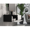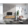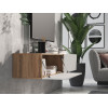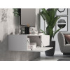 ТВ-тумба Сомеро — современное практичное решение для размещения телевизора и другой техники без лишних затрат жилого пространства. Отсутствие внешней фурнитуры визуально облегчает конструкцию, придавая облику монолитность. Отделения за откидными дверцами обеспечат место для хранения домашней видеотеки и других вещей.