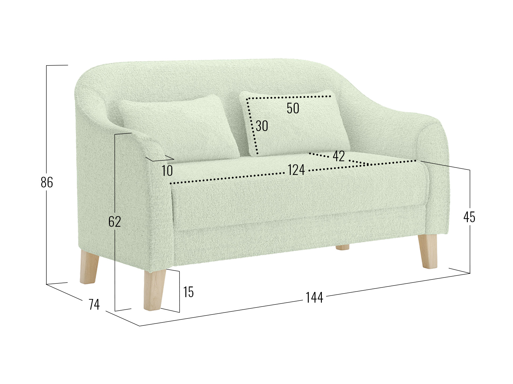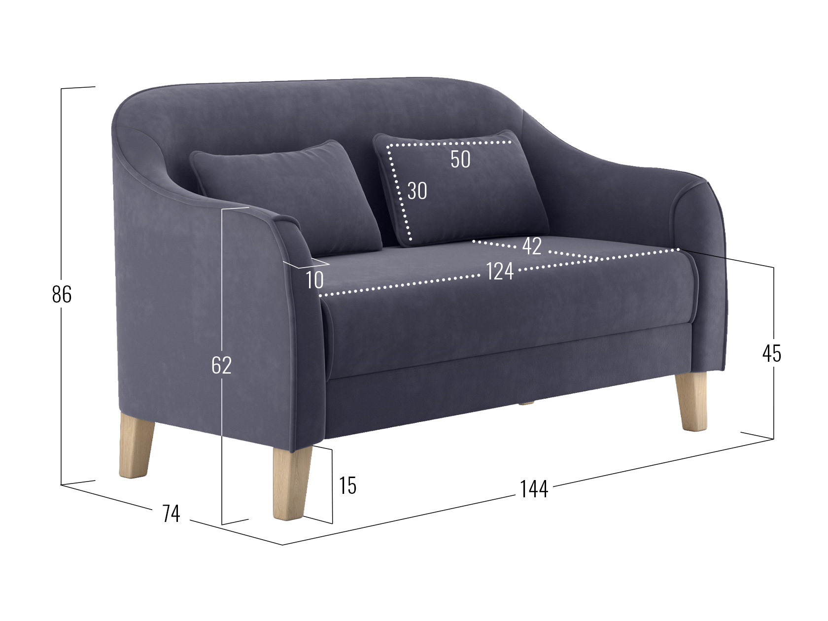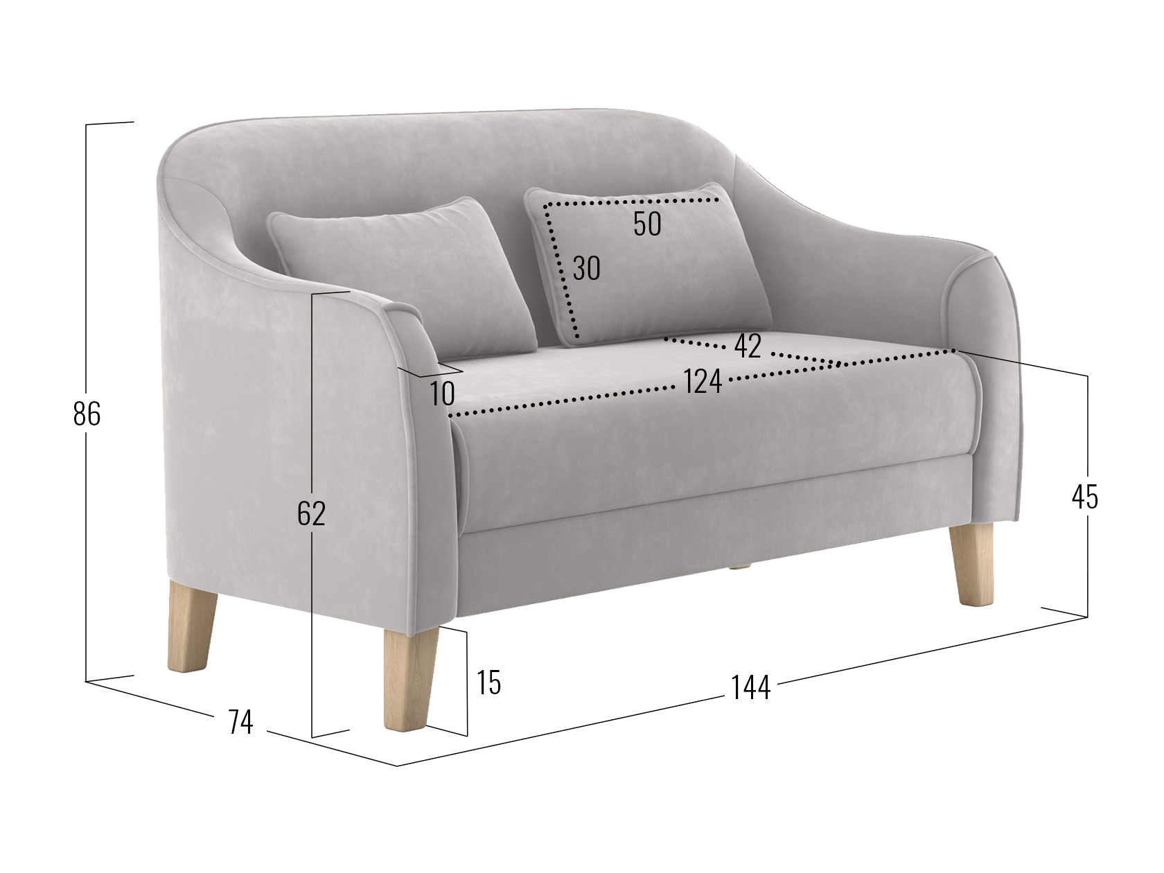 Посадочное место без подушки (ШхГ): 124 х 57 см.