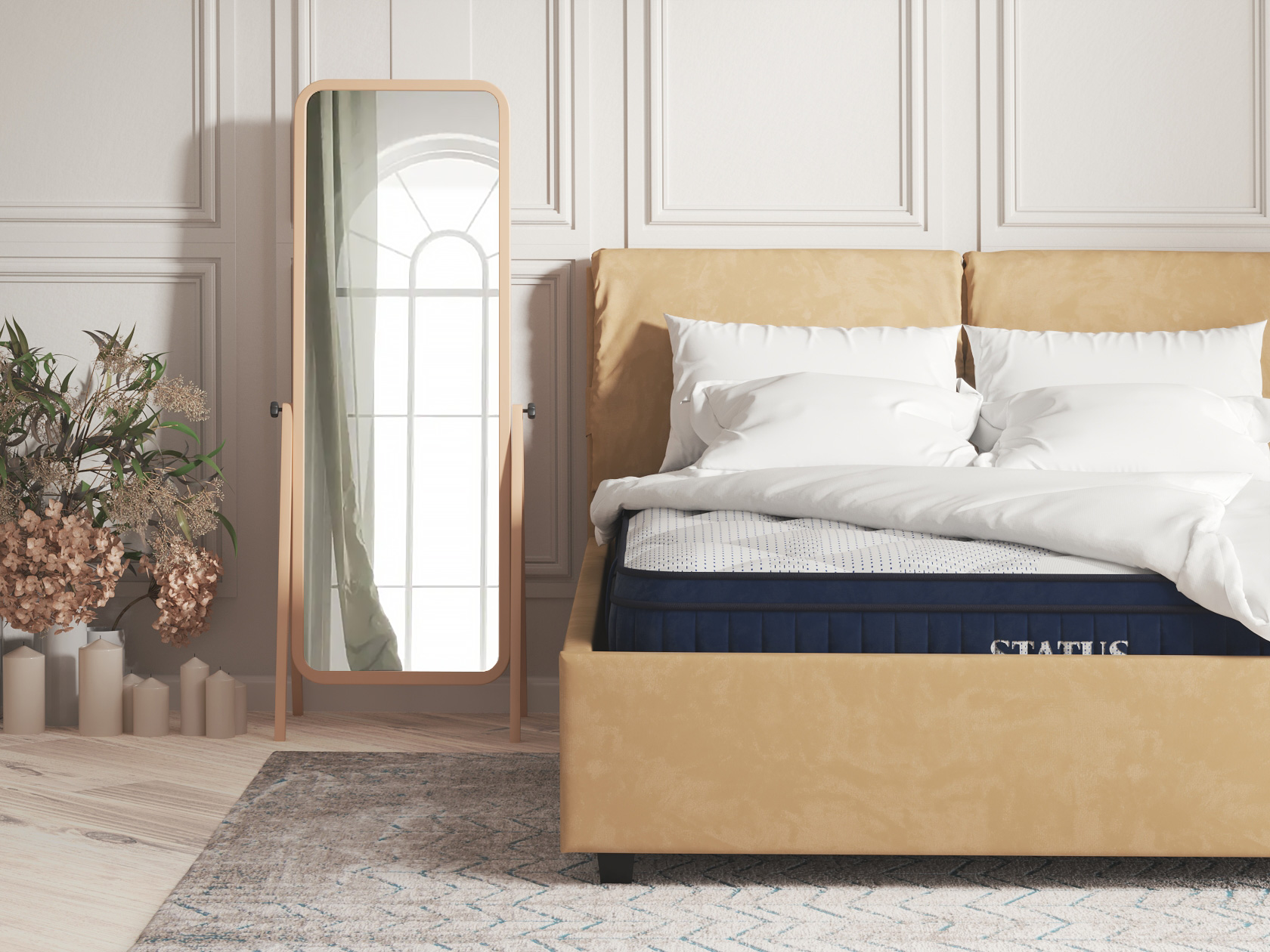 В основе модели Статус / Status S 26 — блок пружин Мультипокет / Multipocket 1024 — 9 зон. Его дополняют три слоя «умных» пен. Хард Фоам / Hard Foam — инновационный наполнитель, ячейки которого по-разному реагируют на прилагаемую силу, обеспечивая оптимальную упругость поверхности.