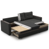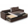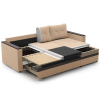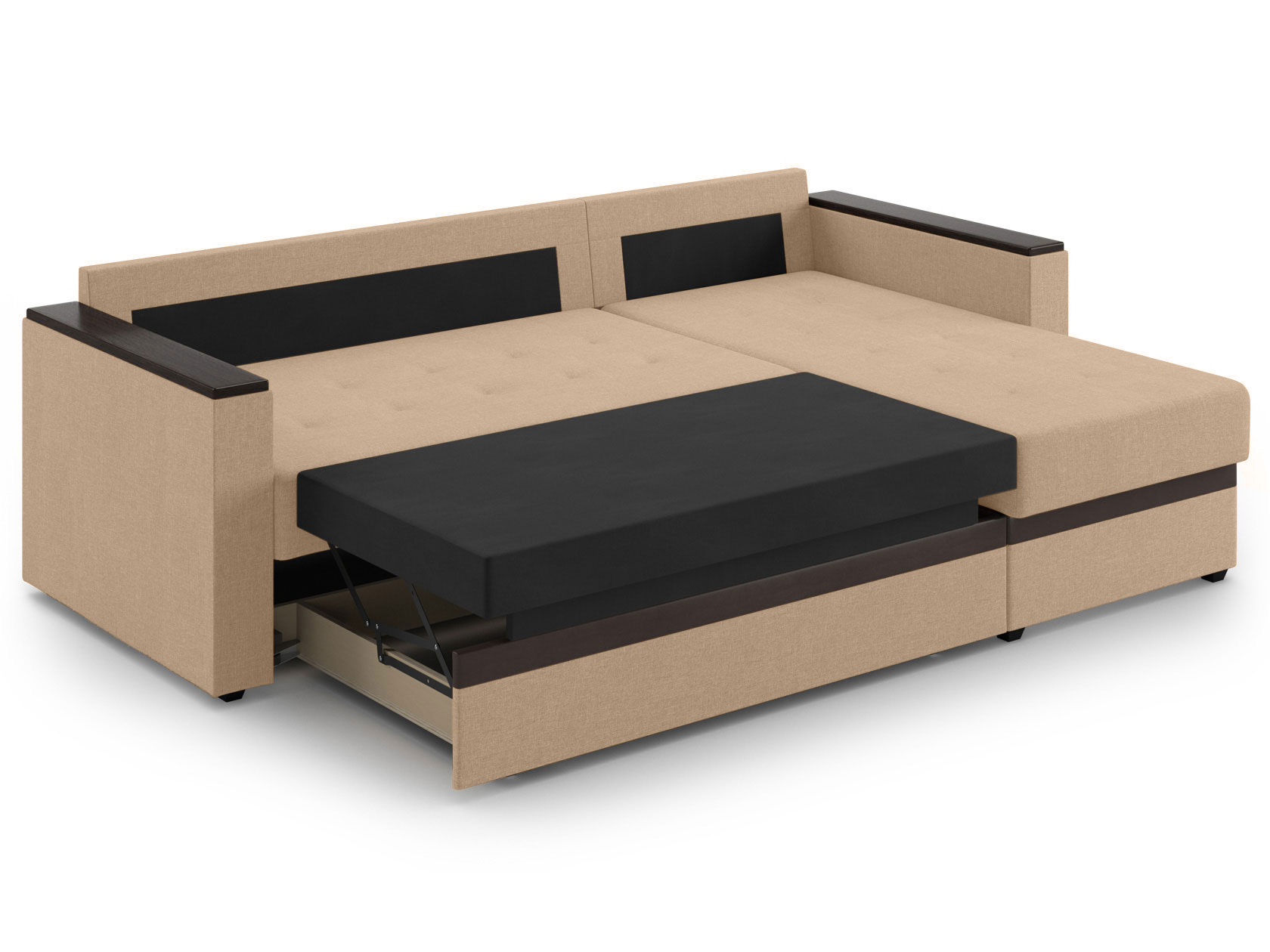Модель легко раскладывается, образуя ровную поверхность, при этом спинка защищает от соприкосновения со стеной и делает спальное место уютнее. В оттоманке расположен вместительный бельевой ящик.