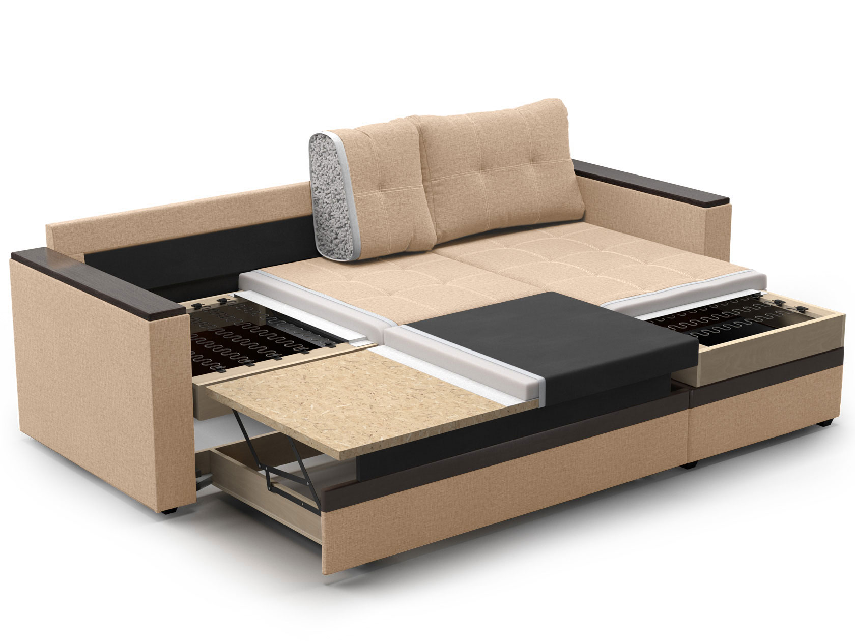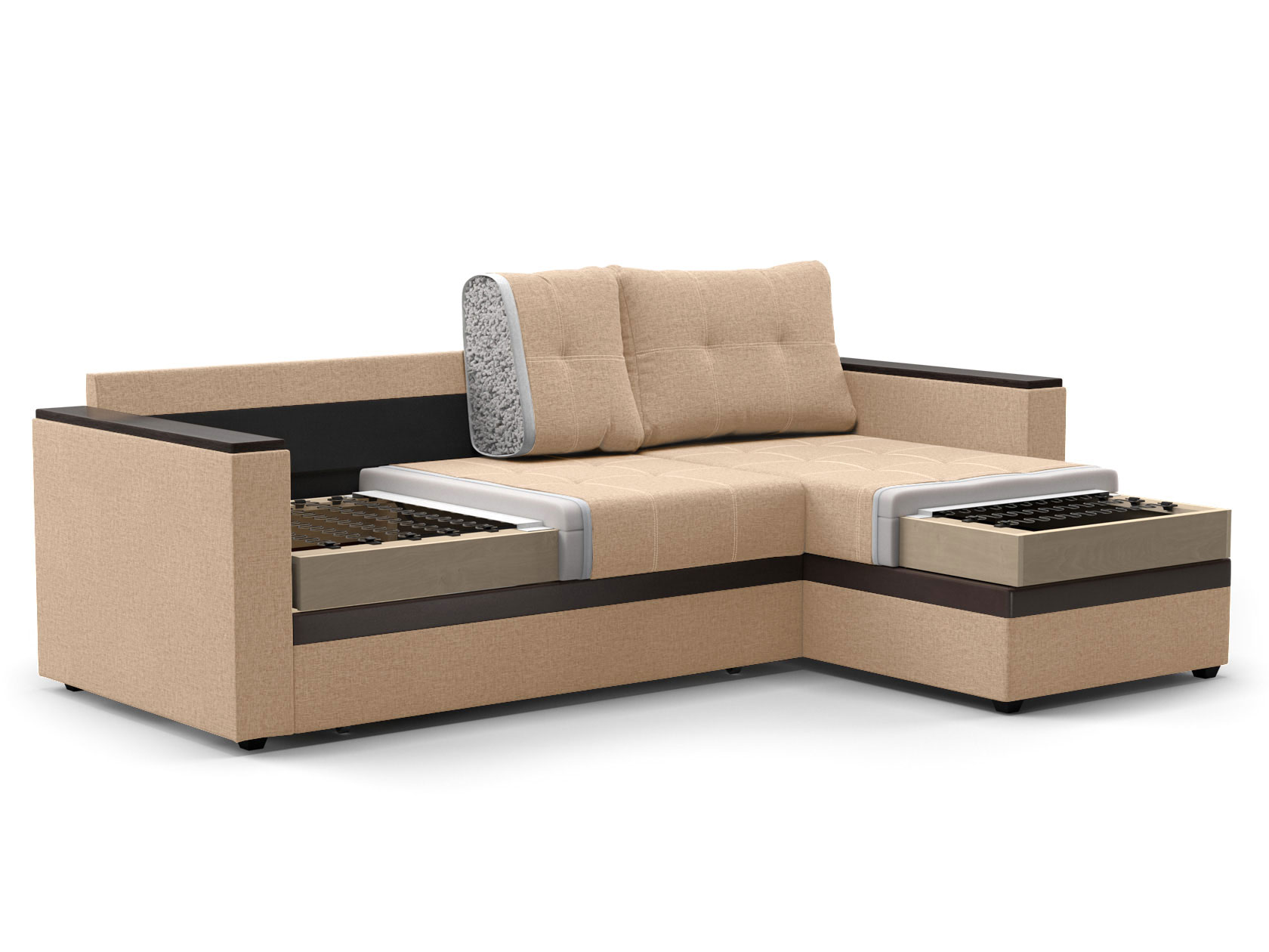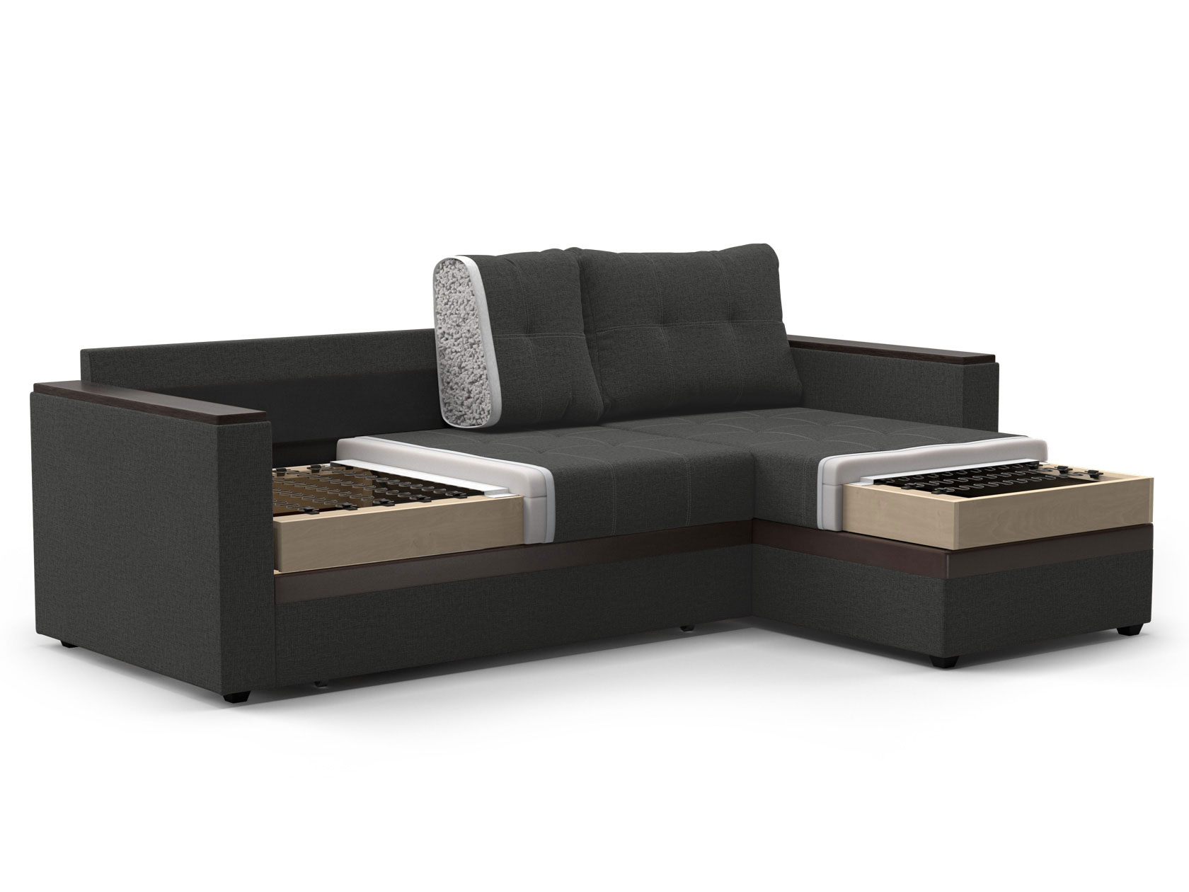 Угловой диван Атлантик — практичная модель для отдыха и ежедневного сна. Плотные удобные подушки позволяют комфортно устроиться на диване, отрегулировав глубину посадки. Благодаря съемным чехлам за ними очень просто ухаживать. Подлокотники с накладками можно использовать для пульта, смартфона и других мелочей.
