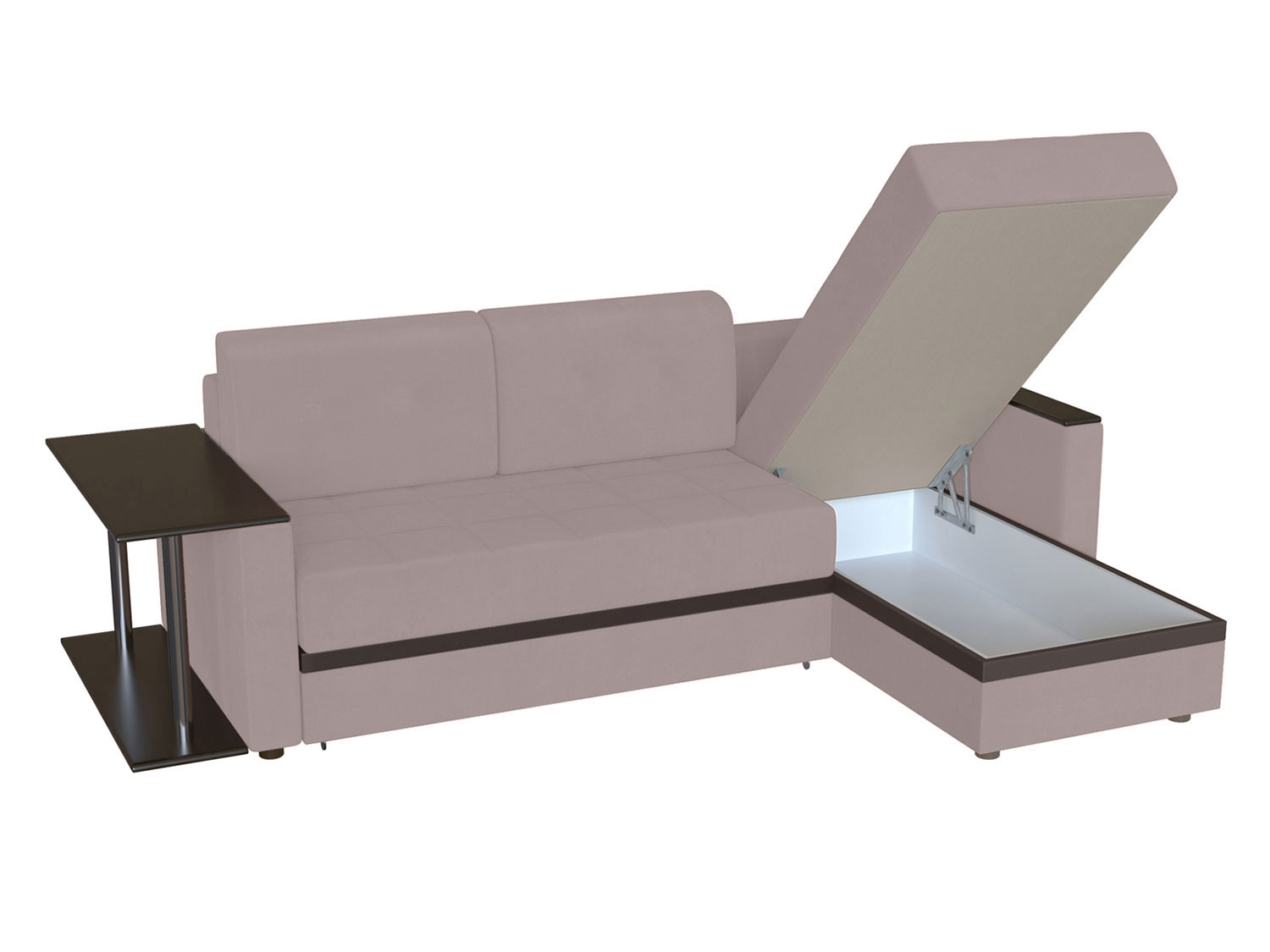 Трехместный угловой диван Атланта позволит с комфортом отдохнуть после трудового дня. На встроенный журнальный столик удобно поставить кружку с чаем, положить телефон или пульт от телевизора. Высокая спинка защищает от соприкосновения со стеной когда диван разложен для сна.