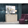 Комодино Капри станет изюминкой интерьера и расширит систему хранения любой комнаты. В оформлении фасадов используются нежный пастельный оттенок, изящная фрезеровка и золотой декор. Такой дизайн придает мебели особое очарование и элегантный внешний вид. Внутри можно удобно разместить множество самых разных вещей.