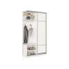 Прихожая Маршал станет отличным решением для меблировки небольшого помещения. Конструкция поделена на две равные по размеру секции: отделение со штангой для вешалок и нишу с полками и крючками для верхней одежды. Отличительная черта модели — дверь, которая перемещается по однополосному треку вправо или влево, поочередно открывая и закрывая каждую из секций, что важно для узкого коридора.
