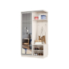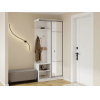 Прихожая Маршал — отличный вариант для обустройства функционального пространства в малогабаритной квартире. Система хранения поделена на две равные по размерам части: отделение со штангой и нишу с полками и крючками для повседневной одежды. Дверь перемещается по однополосному треку вправо и влево, поочередно открывая и закрывая каждую из секций, что особенно важно для узкого коридора. Зеркальный фасад позволит в деталях оценить подобранный образ и визуально расширит пространство помещения.