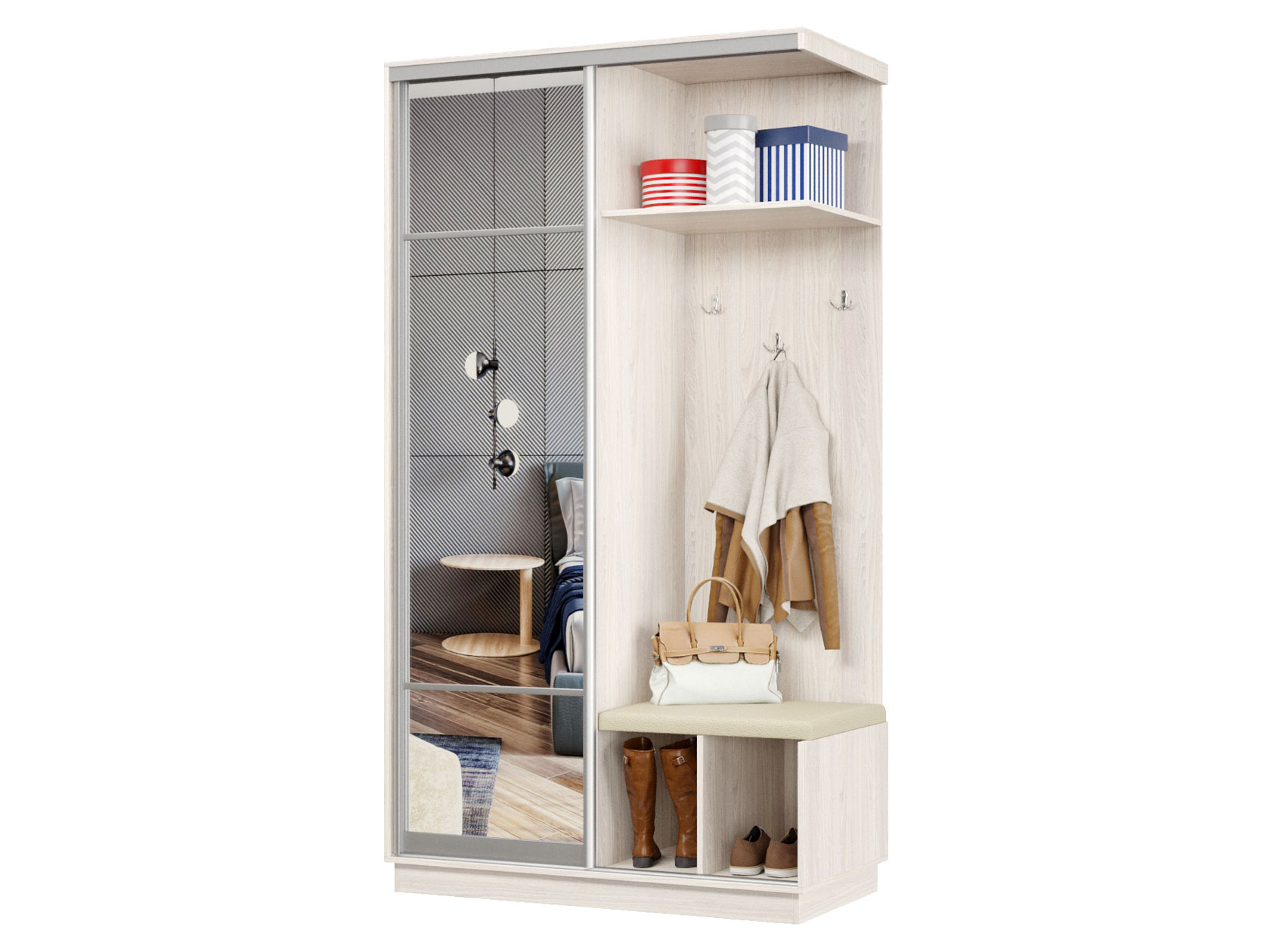 Ясень шимо светлый / Зеркало / Серебро, алюминий / Бежевый, экокожа. 240 см. 45 см. Правая
