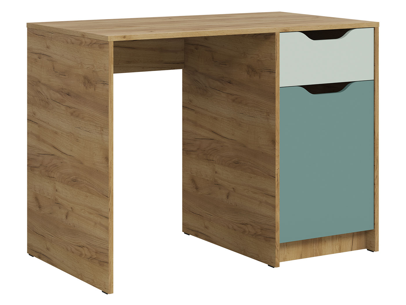 Письменный стол Рич создаст удобный уголок для учебы. На столешнице без проблем поместятся раскрытая тетрадь, учебник и настольная лампа, а в тумбе — другие принадлежности и канцелярские предметы. Ящик и дверца выполнены в разных оттенках, которые идеально сочетаются между собой.