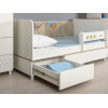 Детская кровать Эйп поможет организовать комфортную зону для полноценного отдыха и здорового сна в комнате ребенка. Съемный мягкий элемент с карманами, закрепленный на спинке, подойдет для размещения под рукой любимых игрушек. Выдвижные ящики для белья позволят хранить постельные принадлежности и сложенную одежду. Съемный бортик защитит ребенка от падения. Скругленные углы обезопасят от получения непредвиденных травм. Благодаря регулируемым опорам модель можно разместить даже на неровном полу.