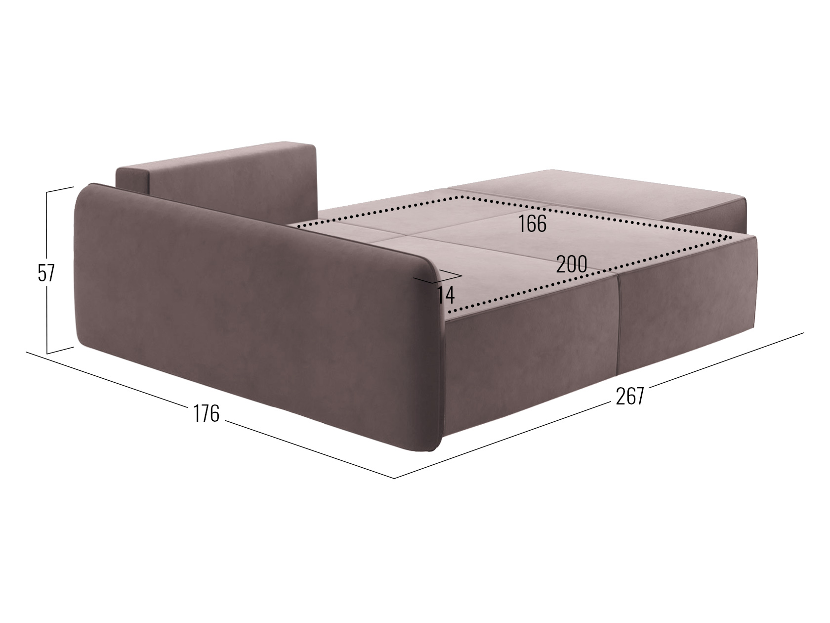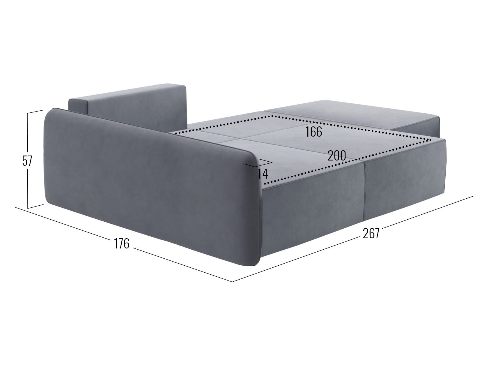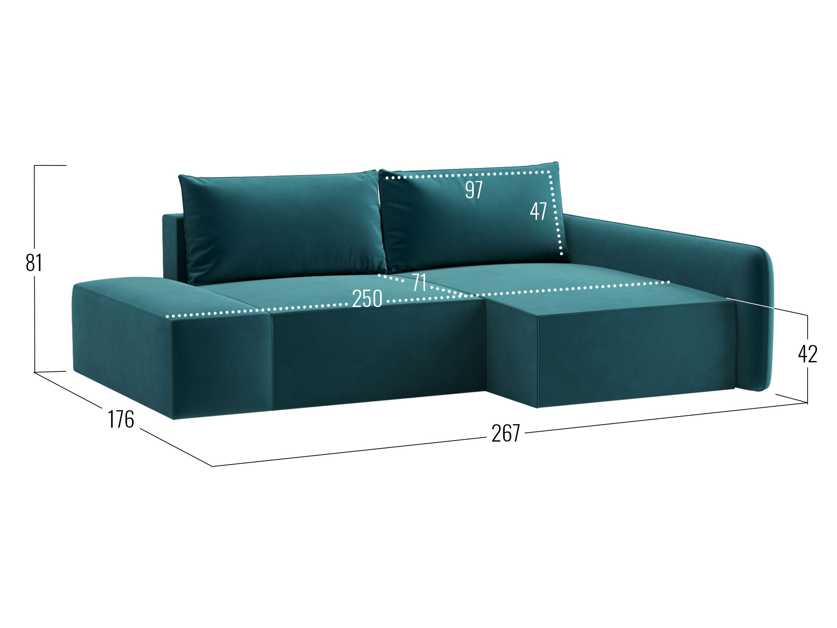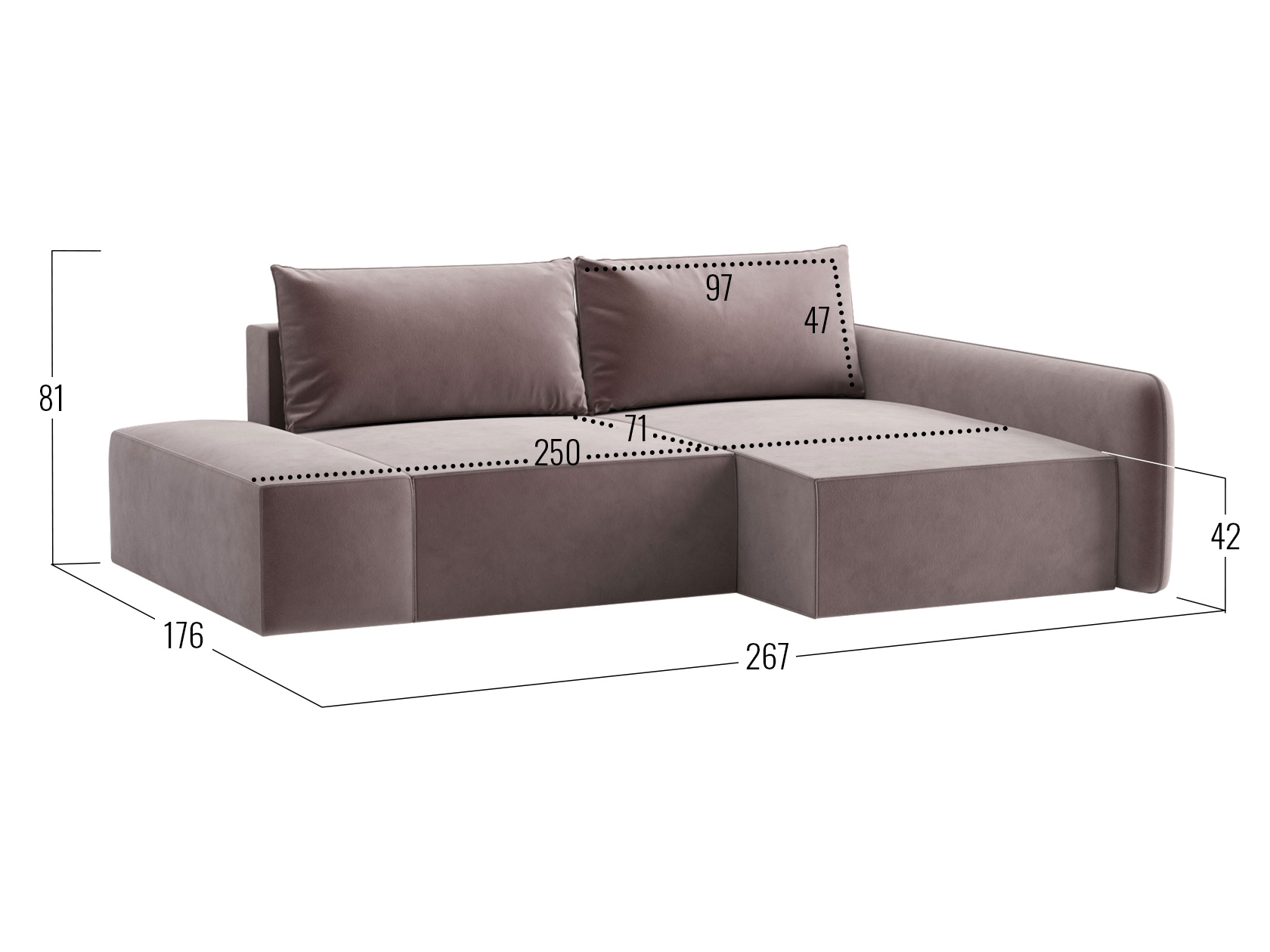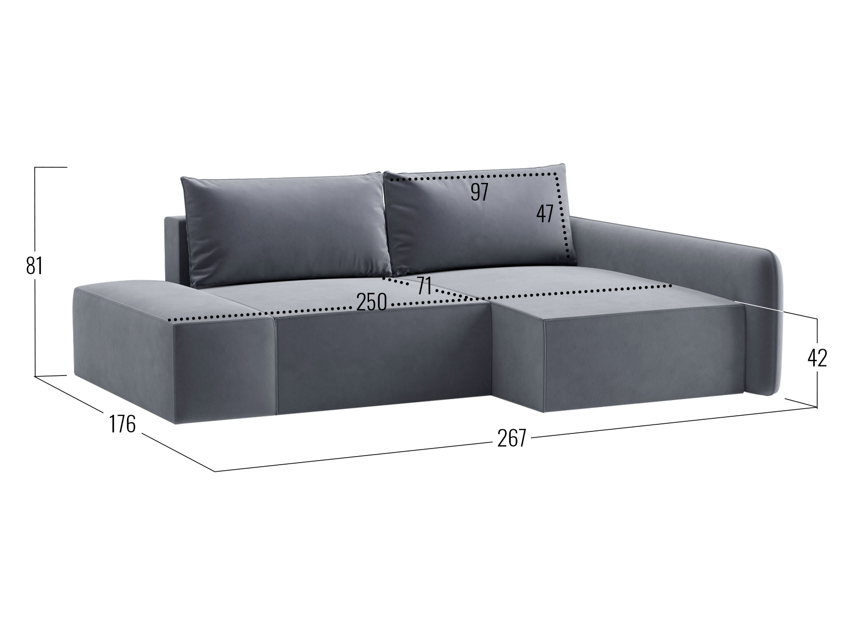 Посадочное место без подушки (ШхГ): 250 х 100 см.