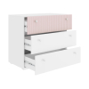Детский комод Алиса — незаменимый помощник в поддержании порядка. Модель придется по душе любой девочке. Внутри можно хранить игрушки, белье, одежду или учебные принадлежности. Нежный оттенок декора на фасаде верхнего ящика придает комоду особое очарование.