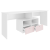 Письменный стол Алиса — прекрасный способ оформить рабочее место сразу для двух девочек. Конструкция предусматривает широкую столешницу и тумбу с ящиком и нишами. На столе поместится всё необходимое для учебы: от настольной лампы до органайзеров с ручками и разными мелочами.