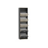Обувница Санти — удачное решение для небольшой прихожей. Узкая вертикальная конструкция не загромождает пространство и свободно вмещает обувь для большой семьи. Комбинированные фасады дополнены лаконичными ручками, которые подчеркивают минималистичный дизайн модели.