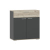 Комод Санти оснащен небольшим выдвижным ящиком и просторной секцией с распашными дверцами. Вверху удобно хранить ключи, аксессуары и другие мелочи, без которых не обойтись в любой квартире, а на полках — более габаритные вещи. Гладкие фасады и лаконичная фурнитура подчеркивают минималистичный дизайн модели.