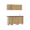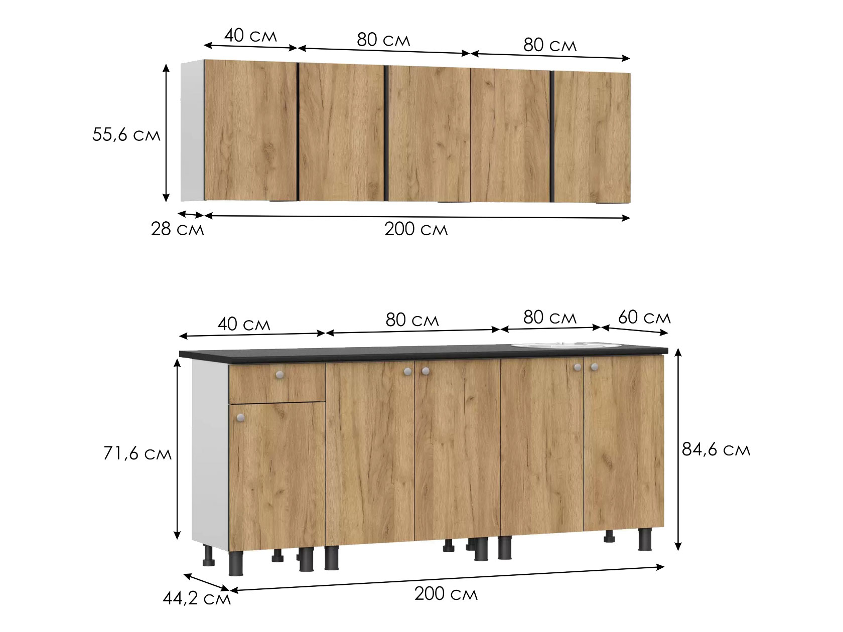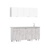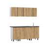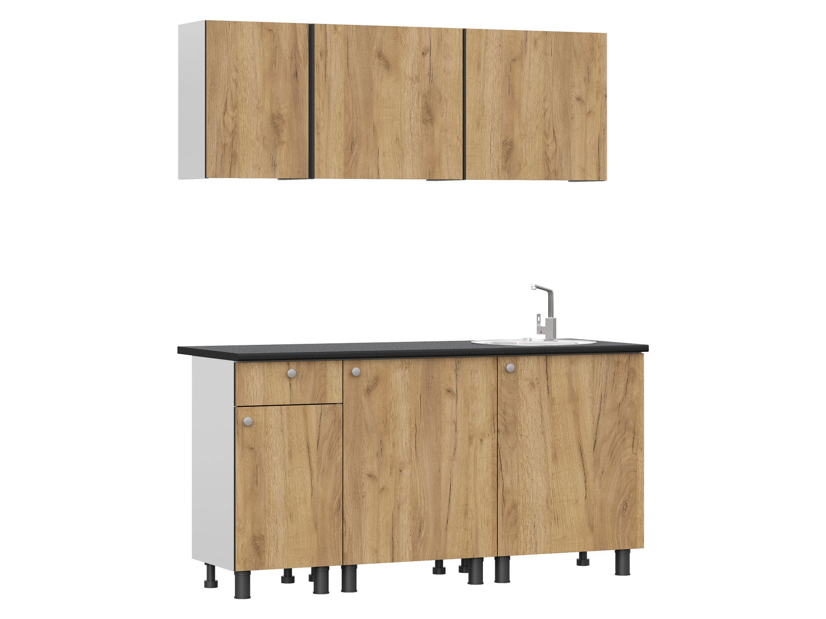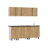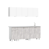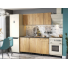 Кухонный гарнитур Кайган — практичное решение для обустройства квартиры-студии. Внутреннее наполнение позволит разместить посуду, столовые приборы и утварь для приготовления пищи. Нижние фасады дополнены удобными ручками-кнопками, а верхние дверцы открываются за выступающий торец.