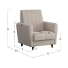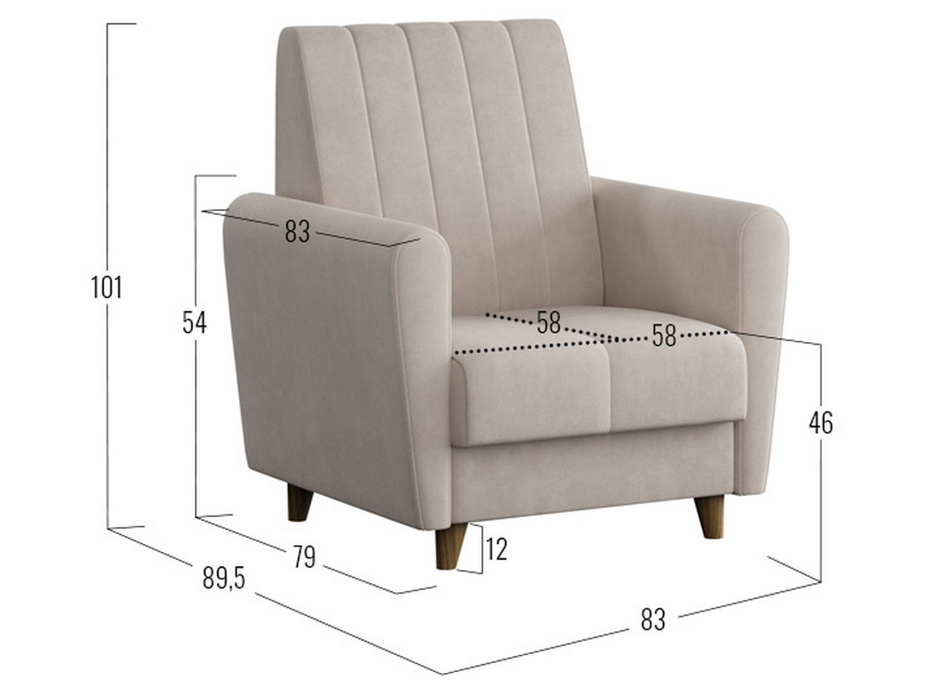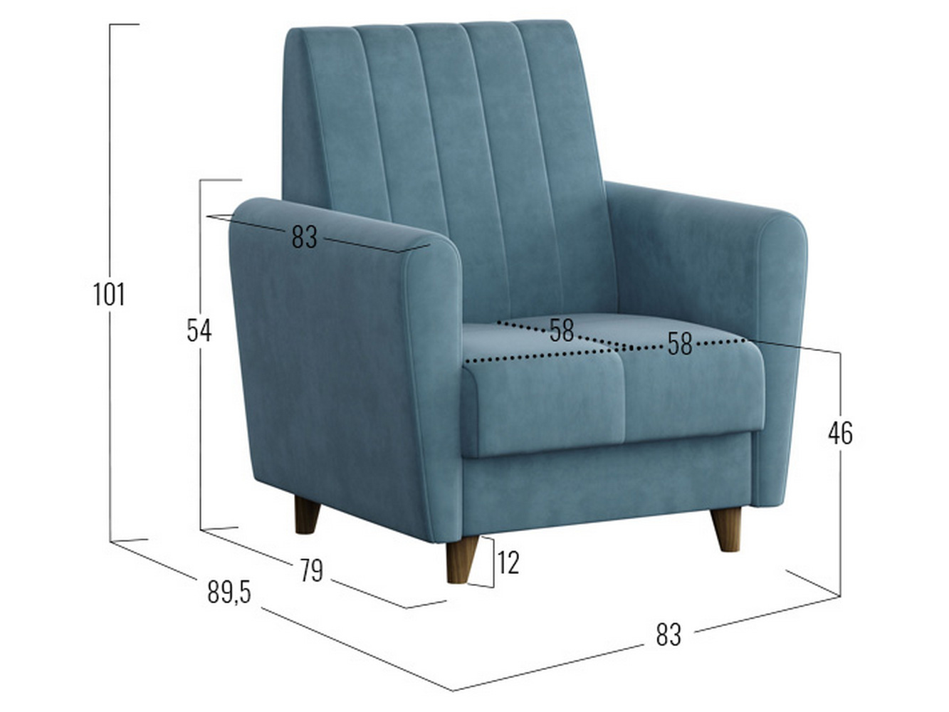 Кресло Синди отлично смотрится со всех ракурсов, поэтому с ним легко оформить зону отдыха в любой части комнаты. Необычная форма подлокотников и декоративная стежка — детали, которые делают кресло особенно элегантным. Благодаря высоким ножкам модель выглядит изящнее и не затрудняет уборку комнаты.