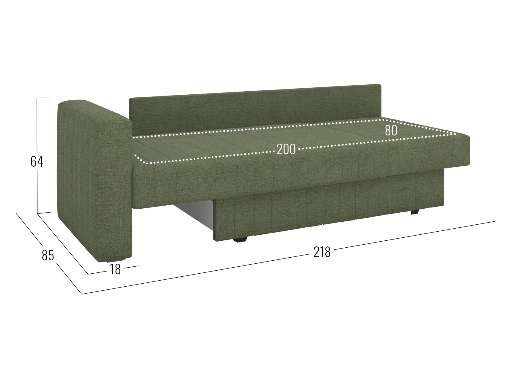 Компактные габариты прямого дивана Элис идеально подходят даже для небольших и узких помещений. Простой лаконичный дизайн отлично сочетается с разными интерьерными стилями. Съемный чехол облегчает уход за моделью и позволяет при желании изменить цветовое решение. Благодаря простому механизму трансформации диван можно использовать в качестве основного или гостевого спального места. Высокий матрас с независимым пружинным блоком создает комфортные условия для сна. Откидной подлокотник устанавливается с любой стороны.