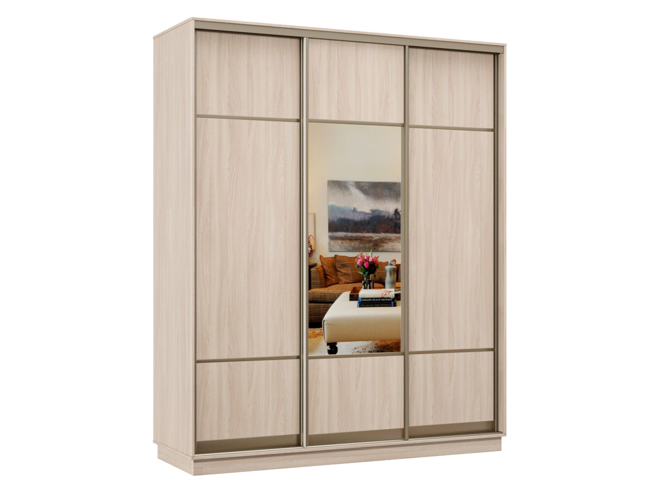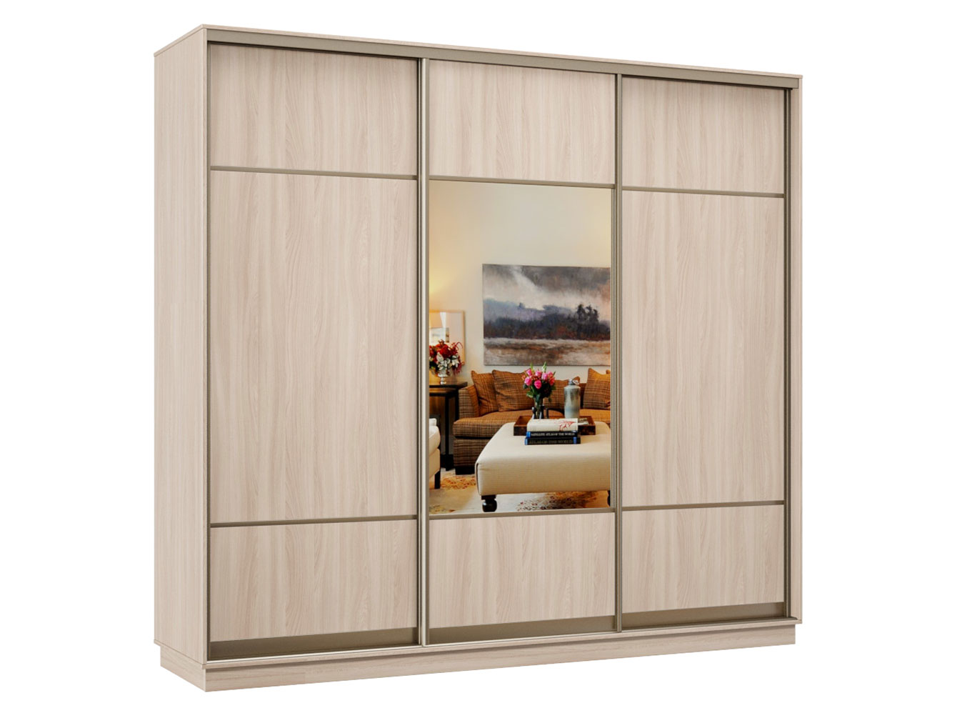 Ясень шимо светлый / Зеркало / Шампань, алюминий. 240 см. 220 см. 60 см