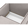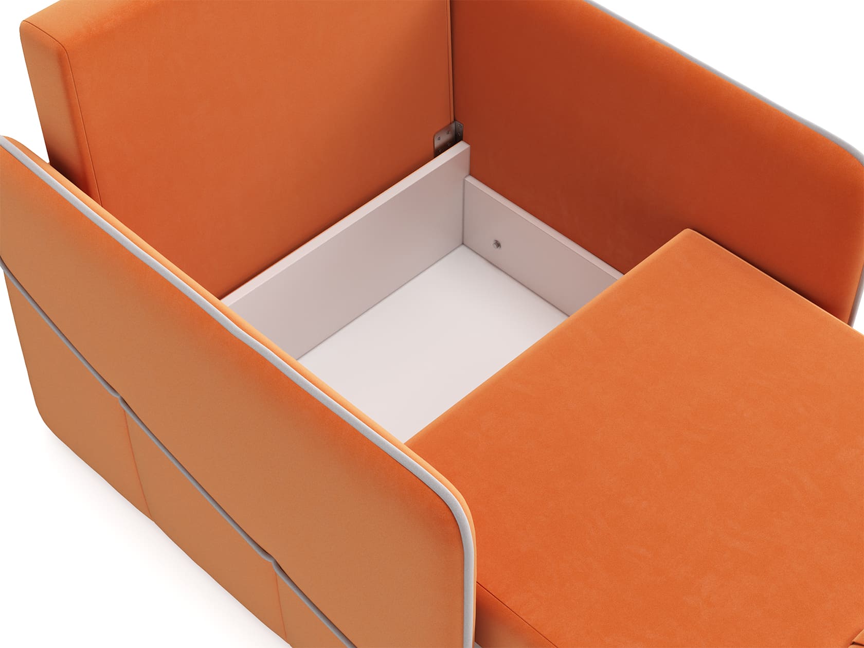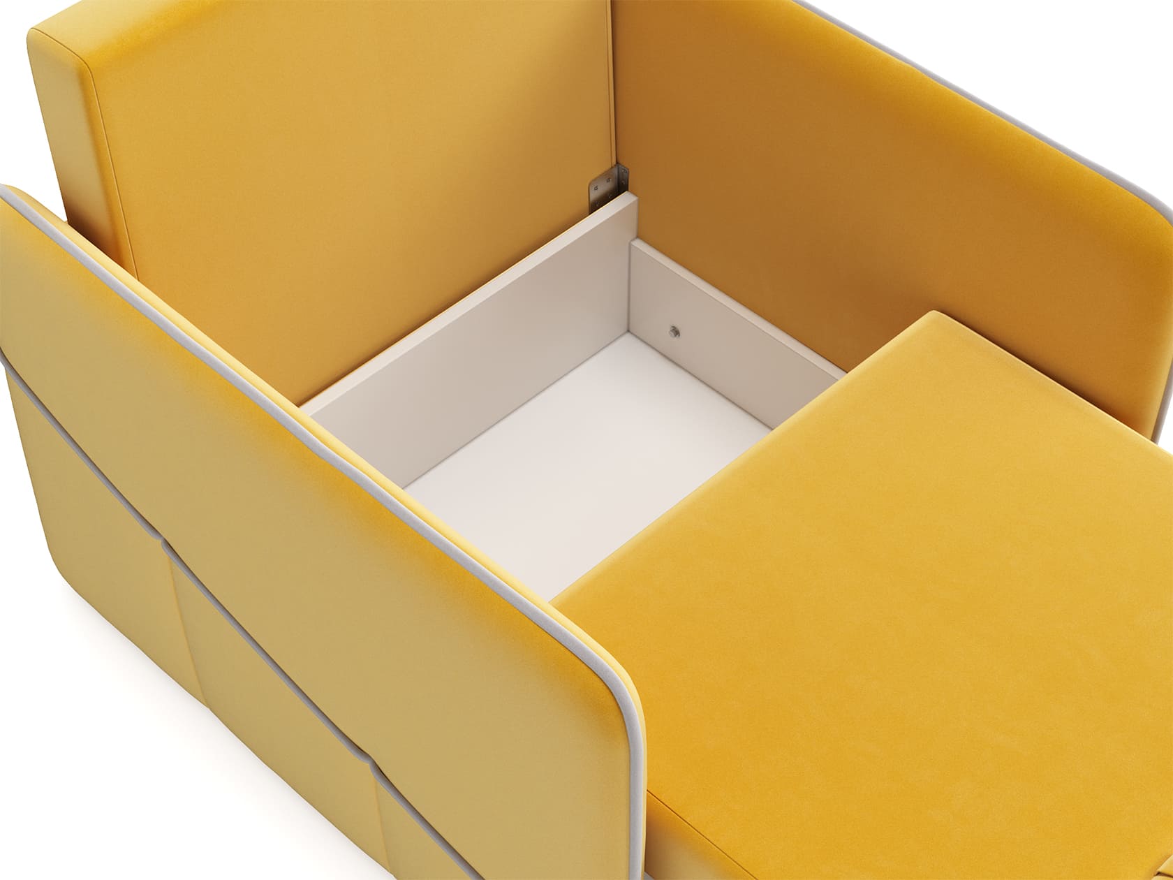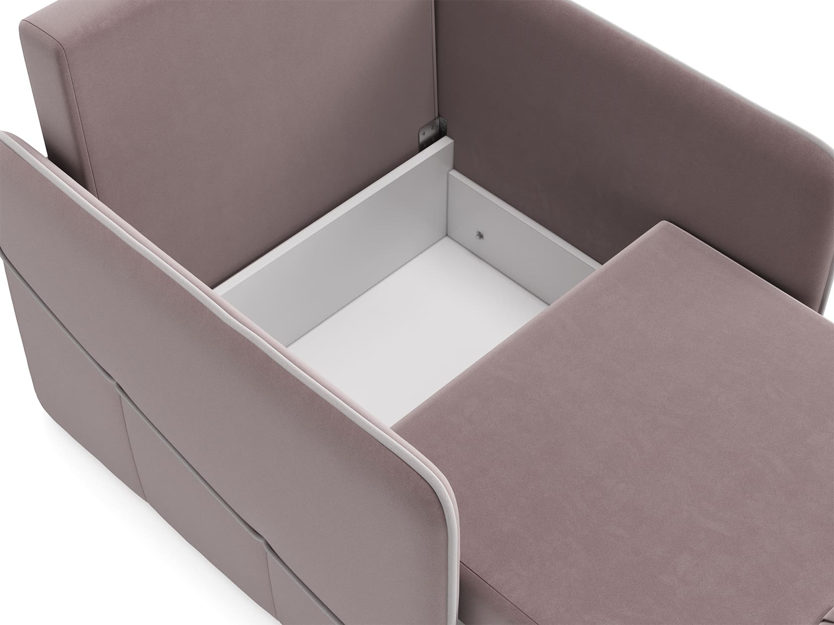 Чтобы трансформировать модель, не требуется особых усилий. В результате получается ровное спальное место для одного человека. В небольшом бельевом коробе можно хранить постельные принадлежности или другие нужные вещи.