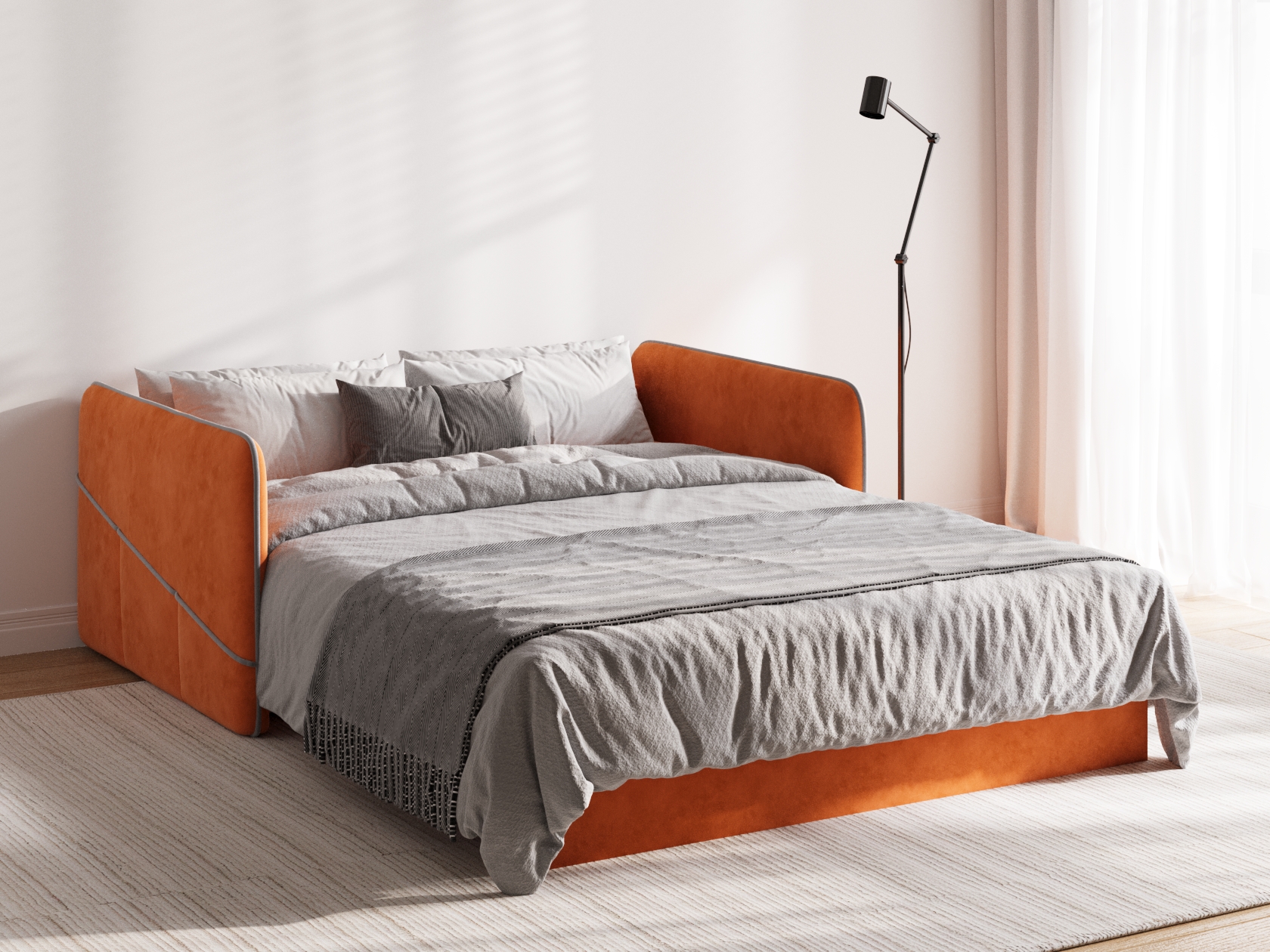 Прямой диван Саймон Мини — отличный вариант для гостиной, детской или квартиры-студии. В сложенном виде модель не занимает много места и создает комфортные условия для отдыха и релакса. Диван легко раскладывается для сна, при этом специальная планка защищает от соприкосновения со стеной.