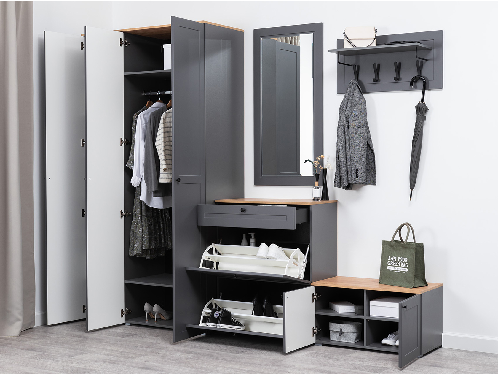Настенная вешалка Остин — компактный и практичный вариант для размещения верхней одежды. Модель оснащена четырьмя однорожковыми крючками и полкой для головных уборов.