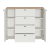 Комод Остин — стильное и практичное решение для оформления интерьера и организации пространства. Комбинированное наполнение предусматривает четыре выдвижных ящика по центру и два отделения с полками за распашными дверцами. Ящики оснащены направляющими скрытого монтажа, что обеспечит выдвижение на всю глубину, плавный бесшумный ход и длительный срок эксплуатации. Опоры регулируются по высоте, что позволит разместить комод на полу с неровностями.