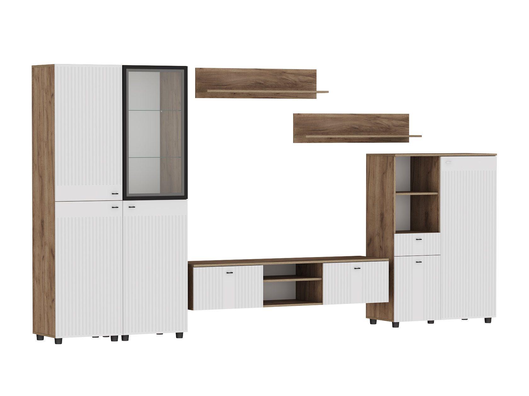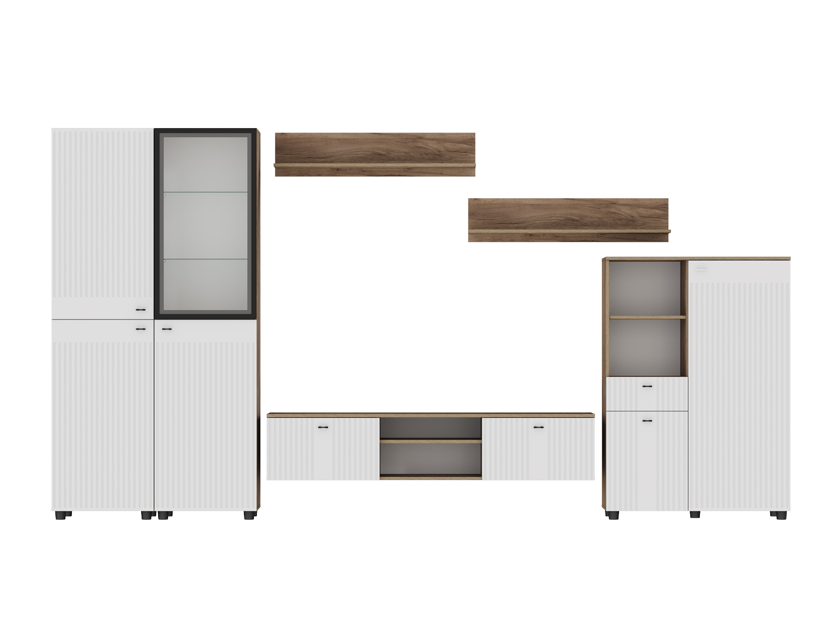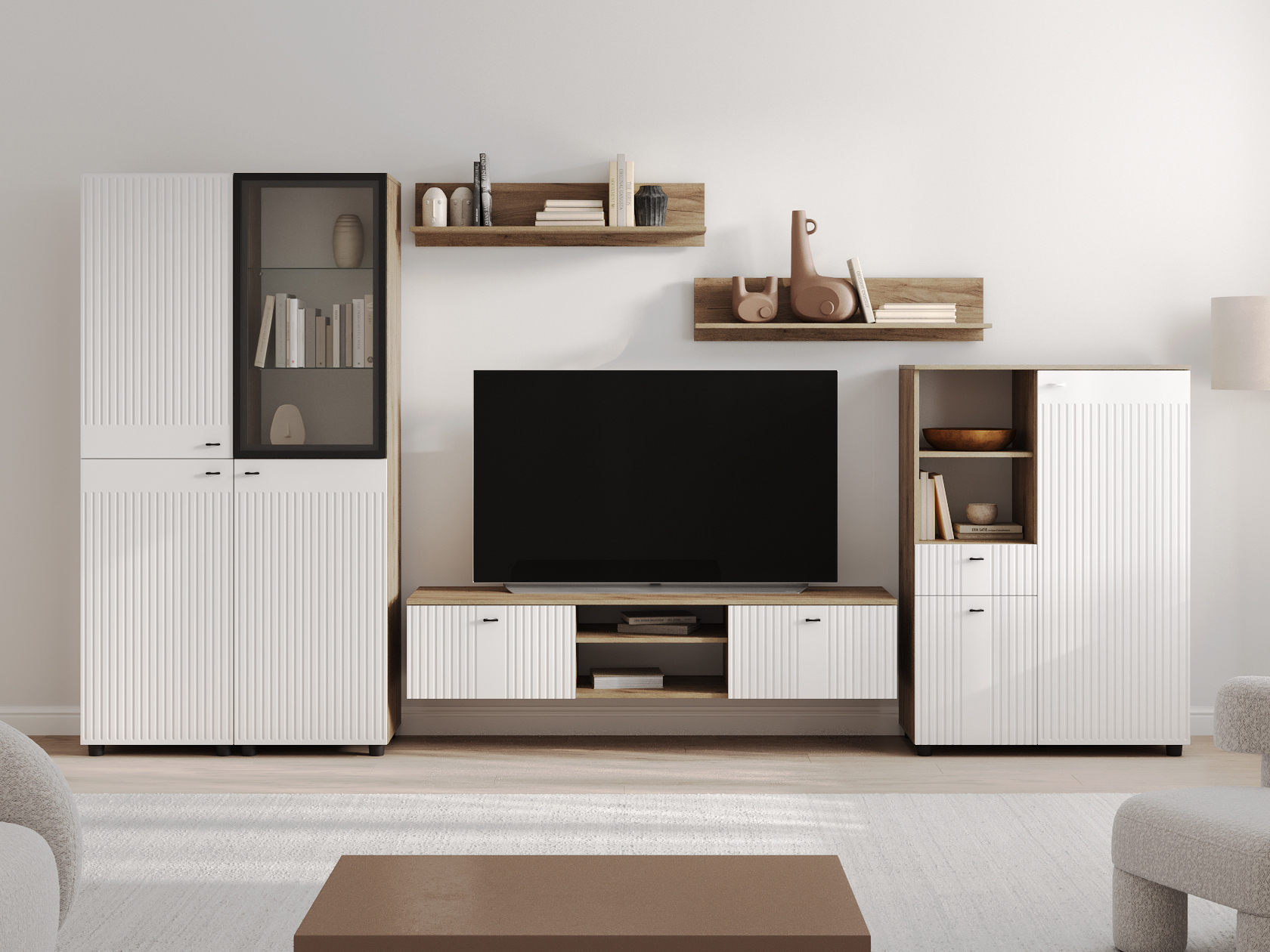 Гостиная Милан выполнена в стильном минималистичном дизайне с преобладанием строгих прямых линий. Внутреннее наполнение представлено выдвижными ящиками на роликовых направляющих и полками для сложенной одежды. ТВ-тумба поможет разместить широкоформатный телевизор и сопутствующую видеотехнику. Дверца со стеклянной вставкой откроет обзор на содержимое, защищая его от пыли и влаги. Изящные глянцевые фасады из качественного экологичного материала сделают помещение визуально просторнее и светлее.
