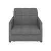 Кресло-кровать Олаф с узкими подлокотниками не занимает много места, при этом подходит как для отдыха, так и для сна. Спинка обита основной тканью, поэтому его можно использовать для зонирования пространства.