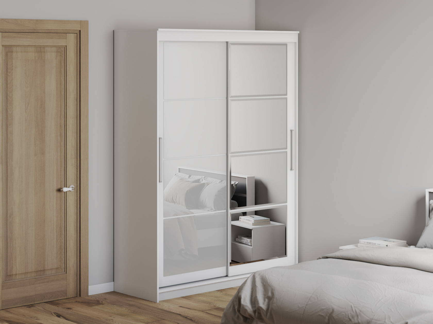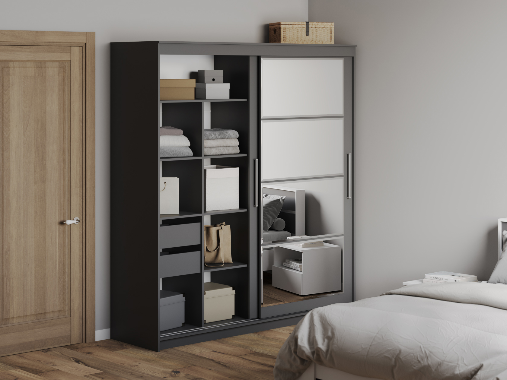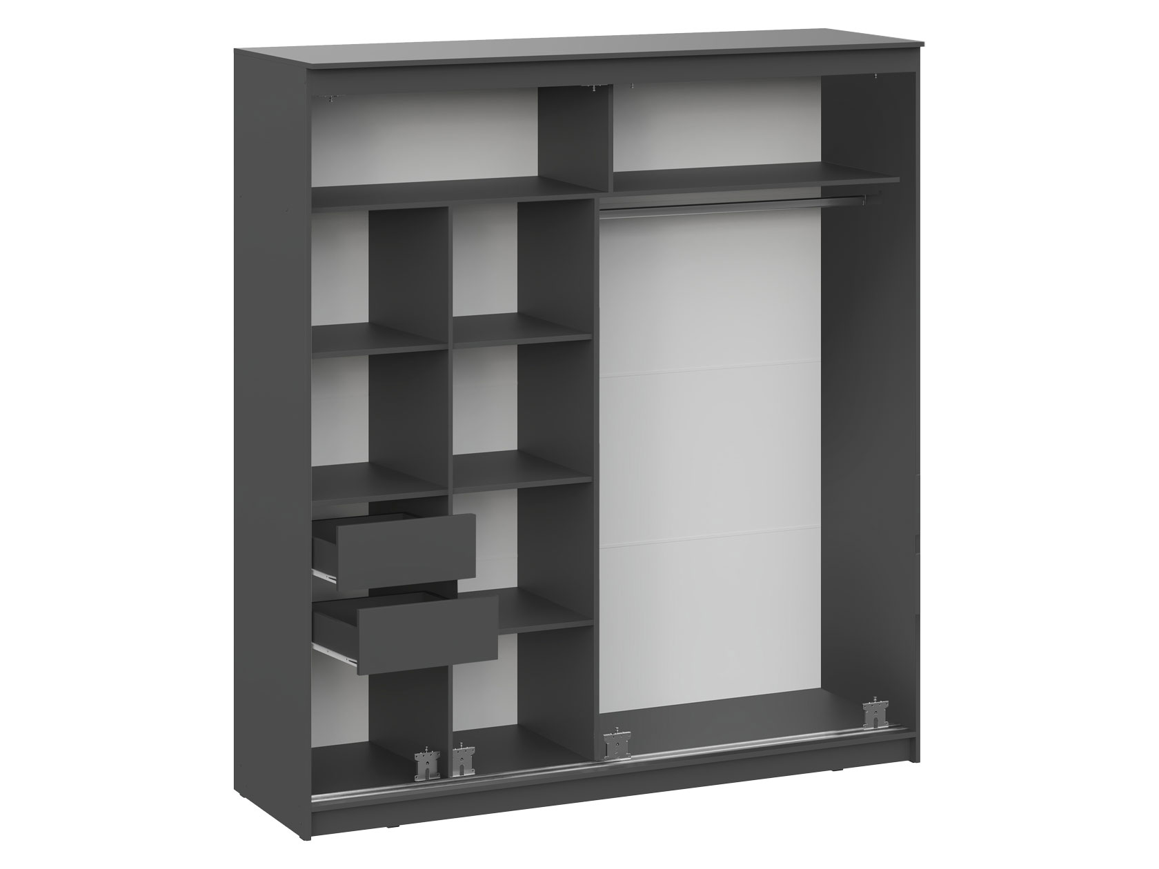 Обратите внимание, в цвете Белый материал фасадов — зеркало и стекло, в цвете Графит — зеркало.