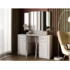 Туалетный столик Гамма поможет компактно и с удобством расположиться для косметических процедур, а также хранить средства личной гигиены и другие необходимые мелочи в одном месте. Опорами выступают две тумбочки с полками за распашными дверцами и небольшими выдвижными ящиками под столешницей. Столик может быть дополнен зеркалом, которое крепится с внутренней стороны.